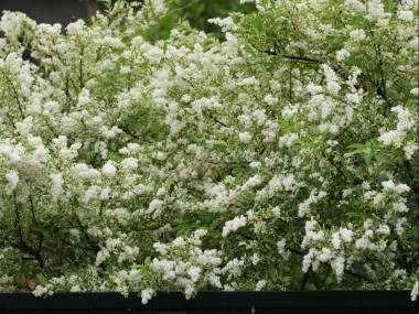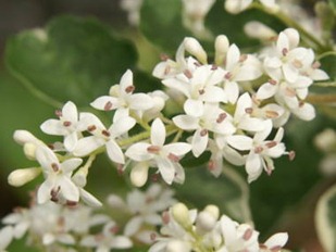 シルバープリペットは夏に小さな白い花を咲かせ、楽しませてもくれます。