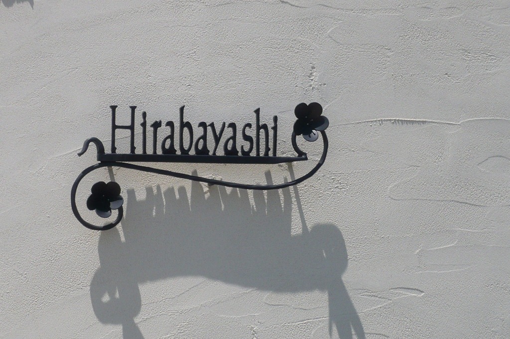 優雅なシルエットが玄関を飾ります。アルミ鋳物のサインも花のデザインが付いて素敵です。
