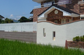 門柱の塗塀はFウォールでラフ調に仕上げしています。
