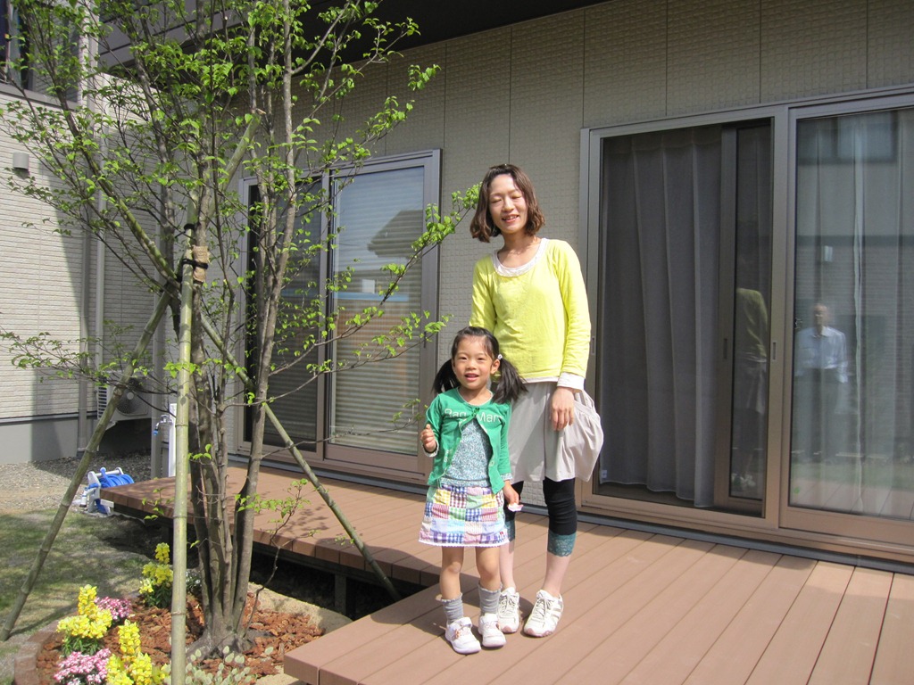 シンプルな庭に予想していた以上に立派だった「やまぼうし」が存在感を持ち、ウッドデッキに写るその影をみてまた癒されています。 芝の中においてもらった黄色のサークルは緑色に成長してきた芝生との色合いがいい感じで毎日庭を眺めいます。