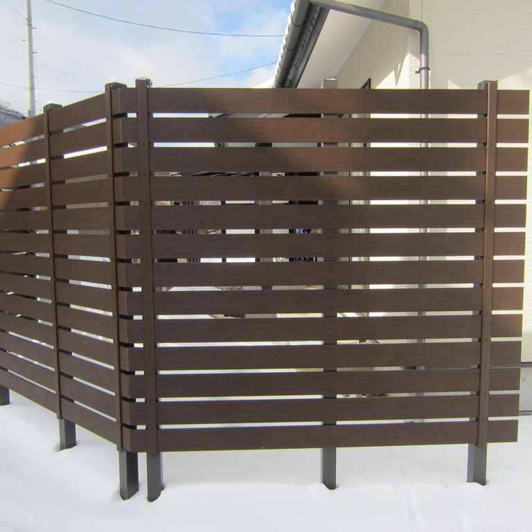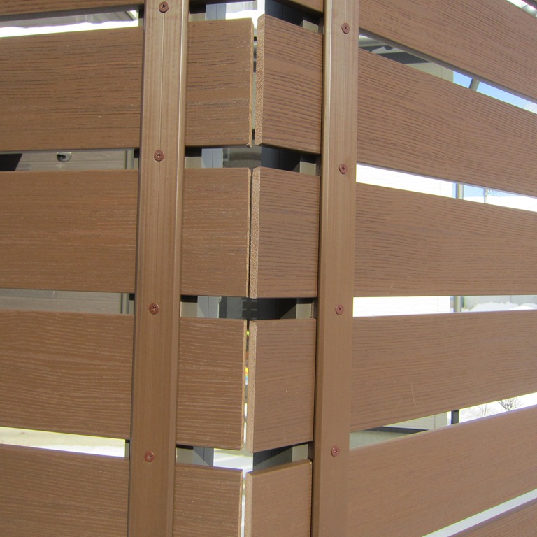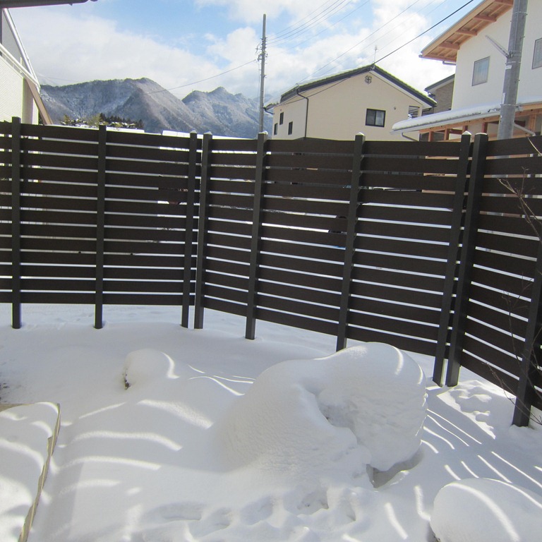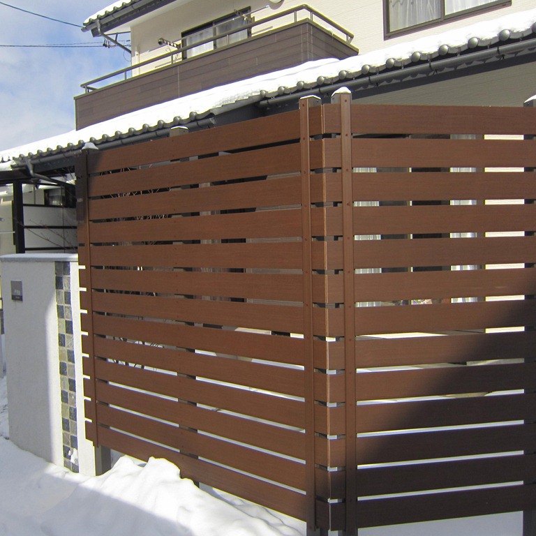 家側から見ても外からの視線が気にならなくなりました、超耐候性なので手入れはいりません、柱もアルミ製なので安心