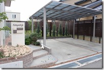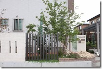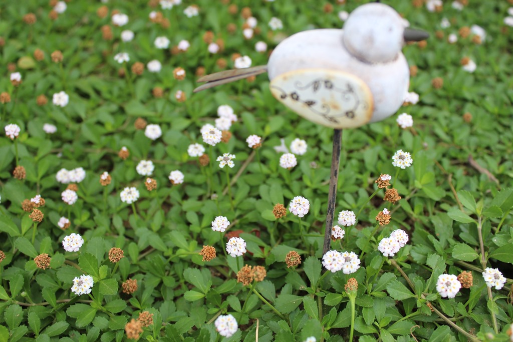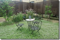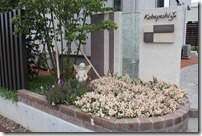 駐車場の後ろ側は一段高くなった庭になっていて、芝生の変わりにクラピアを貼っています。クラピアは芝生よりも手入れが楽で花も咲くので楽しめます。