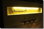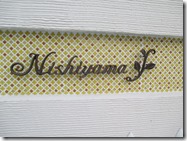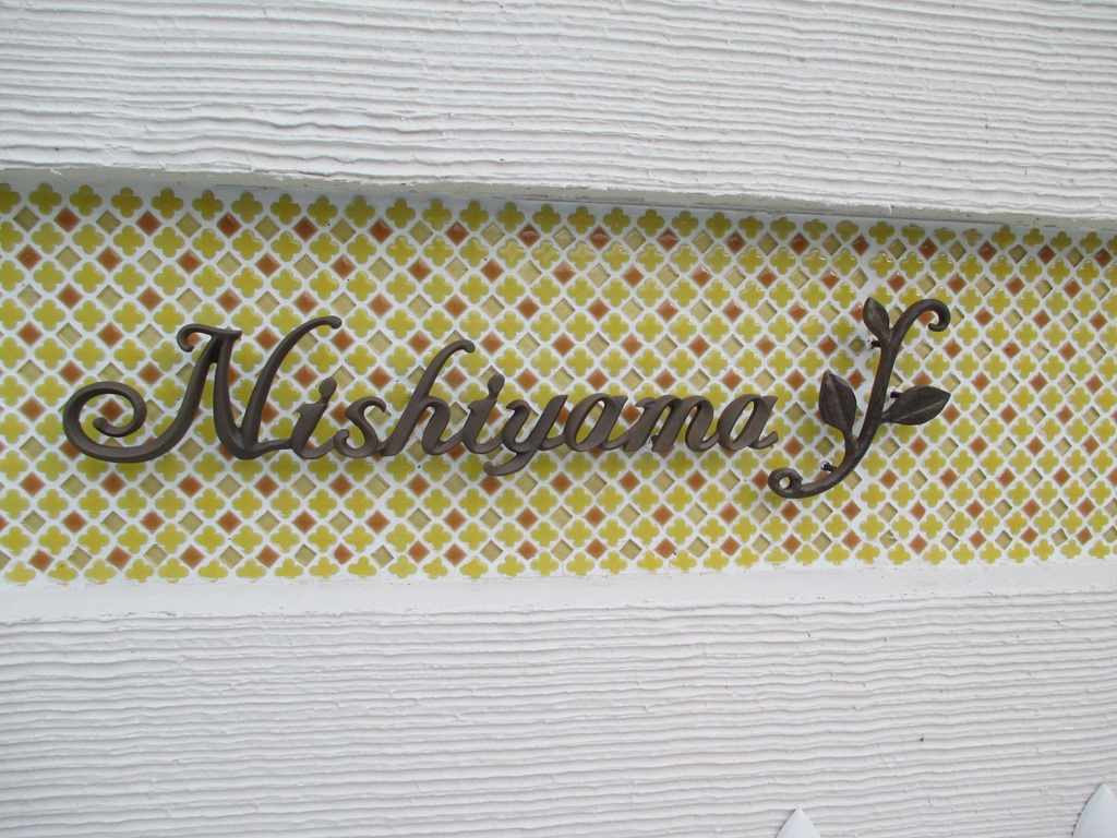 凹みの中に取り付けられたアルミ鋳物サインはディーズガーデンA-07のショコラブラウンで、サインの横に同じ色のミニオーナメントAを取り付けています。ディーズガーデンA-03・A-07を使用するときには、一緒にミニオーナメントを取り付ける事がとても多いです。