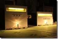 門柱の凹みの部分にLED照明を取り付けているので、夜になると間接照明のように、この凹み部分を輝かせます。これからの外構は夜間照明を上手く使い、昼間と夜間も楽しむことができるエクステリア工事が大切だと思います。長さが1mあるLED防水テープは当社が取り付けられるように加工して作っている商品です。