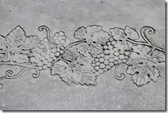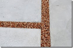 駐車場はコンクリートで仕上げ、縁部分に葡萄模様のボーダーアートの形押しで、コンクリート目地は、ウレタン樹脂で自然石の小砂利(大和桜)を塗込み床を平に仕上げました。