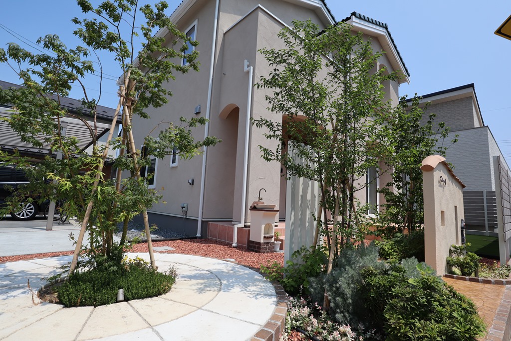 写真は今年の春先に植栽したフロントガーデンです。春に植栽した時は葉っぱも芽吹いていない状態でしたが