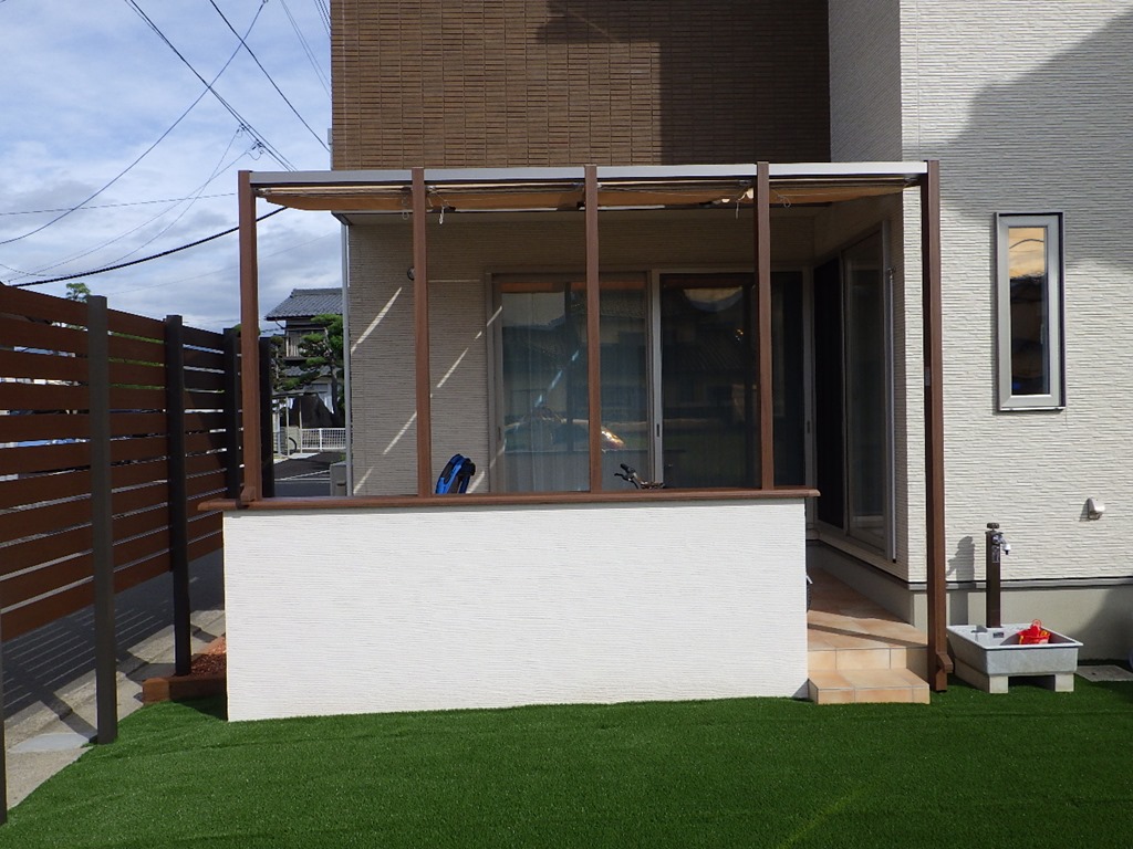 パティオウォールCと角柱ショートに取り付けたオプション この現場を見る。