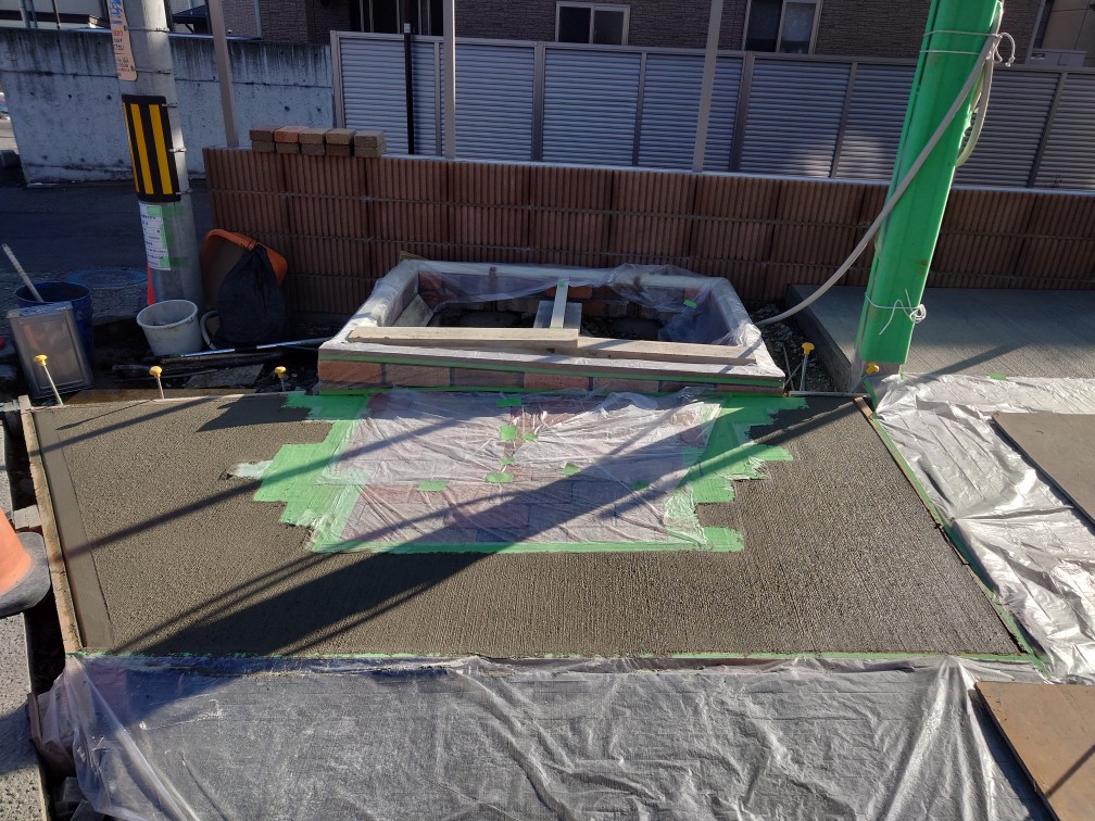 タイルテラス、土間打設 12月2日(火) こちらの現場では、タイルテラスのブロック積みを行いました。ブロックで周りを囲み中に砕石を入れて表面は生コンで平らに打設していきます。その後にタイルを貼りつけて完成になります。 こちらの現場では、物置前の土間を打設していきました。真ん中の養生してある箇所はレンガを埋め込んでありとてもお洒落な仕上がりになります! 長野市 松本市 塩尻市 外構エクステリア