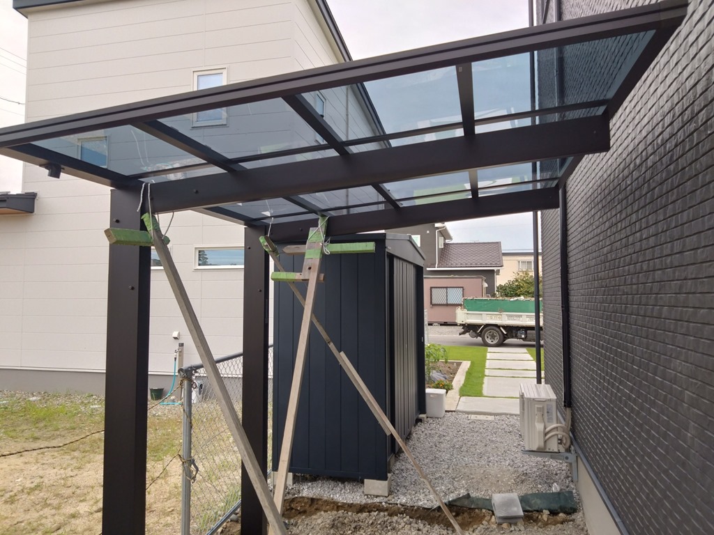 完成間近。カーポート組み立て。