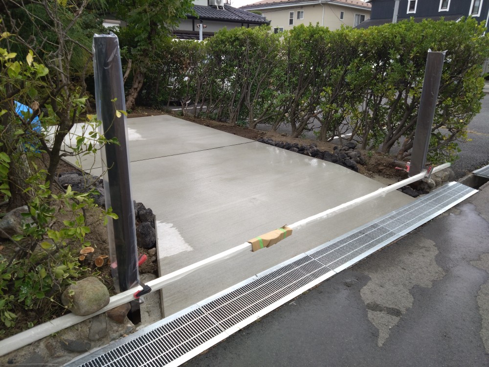 なので今回は道路際から奥へ登っていくように仕上げに入りました。作戦通りに硬化が進んでいく順に均していくことが出来ました。現場によって環境は異なるので臨機応変に施工していくことが大事です。