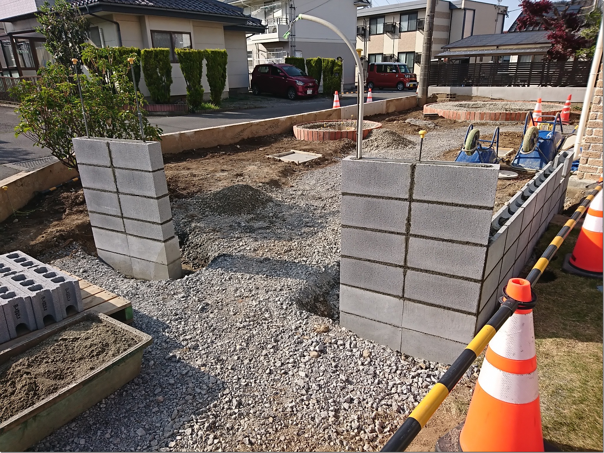 別の班は現在トレドショップの展示場を作っています。今日はジロンデの擬石を使ってサークルを作りました。トレドでは昔から提案させてもっている商品になりますが、なんといっても圧倒的存在感。サイズは直径2m70㎝です。中心のくりぬきにはシンボルツリーを植えます。スペースも限られる商品ですがお庭がかっこよくなる事間違いなしです。そしてトレドの若手スタッフたちも技術向上を兼ねて腰壁ブロックを積んでいます。お客様に質の高い工事をご提供出来るよう日々努力しています。彼らのことも温かい目で見守っていてください!