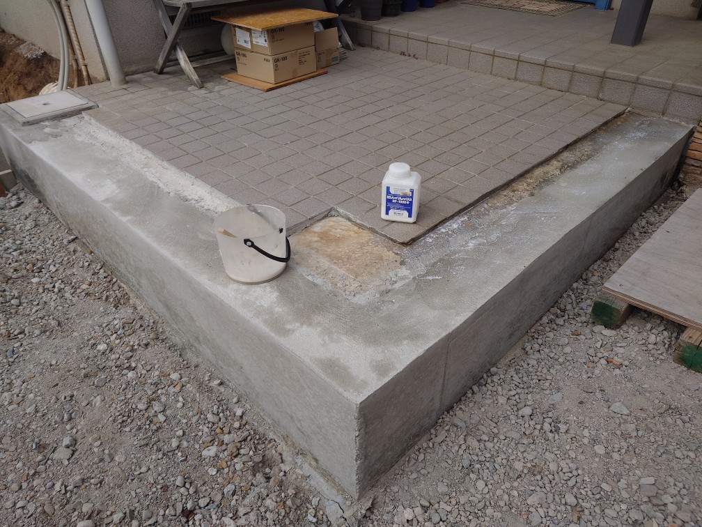 別の箇所でもノヴェルボーダーを使った門柱を積むため基礎ブロックを積みました。