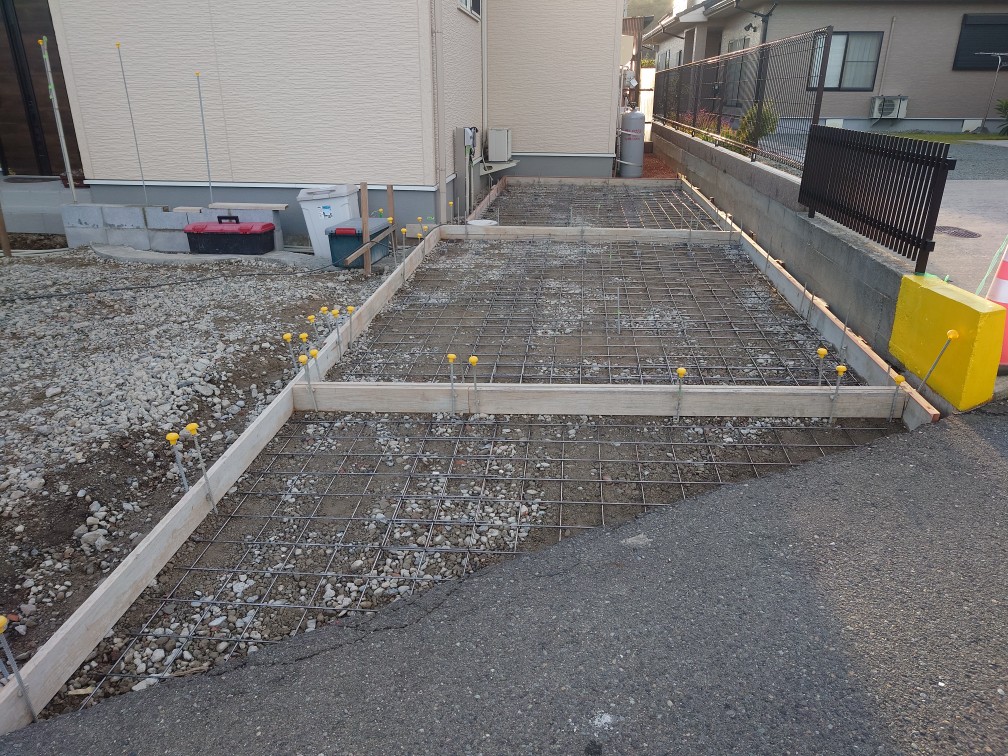 土間下地…レンガ角柱、レンガ花壇下地 10月23日(木) 土間下地作業。十字目地は、土間コンクリートの伸縮に優れ順応性を持っているスーパー目地を施工。鉄筋は、亜鉛メッキ鉄筋を使用しているため、耐久性に優れ、錆びず、腐食することはほとんどありません。 玄関左右に門柱、角柱、レンガ花壇基礎下地。こちらも上記同様、亜鉛メッキ鉄筋を使用。土間、ブロック、門柱などの基礎をしっかりと頑丈に造ることで数十年先も安心な構造物が出来て行きます。 長野市 松本市 塩尻市 外構エクステリア