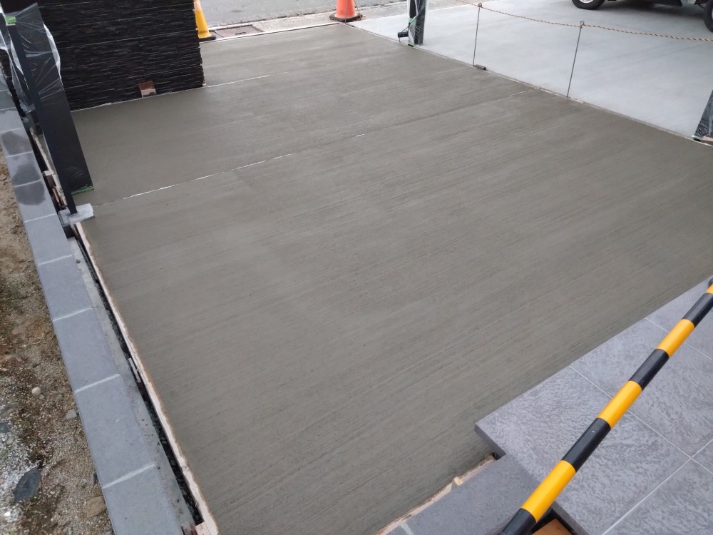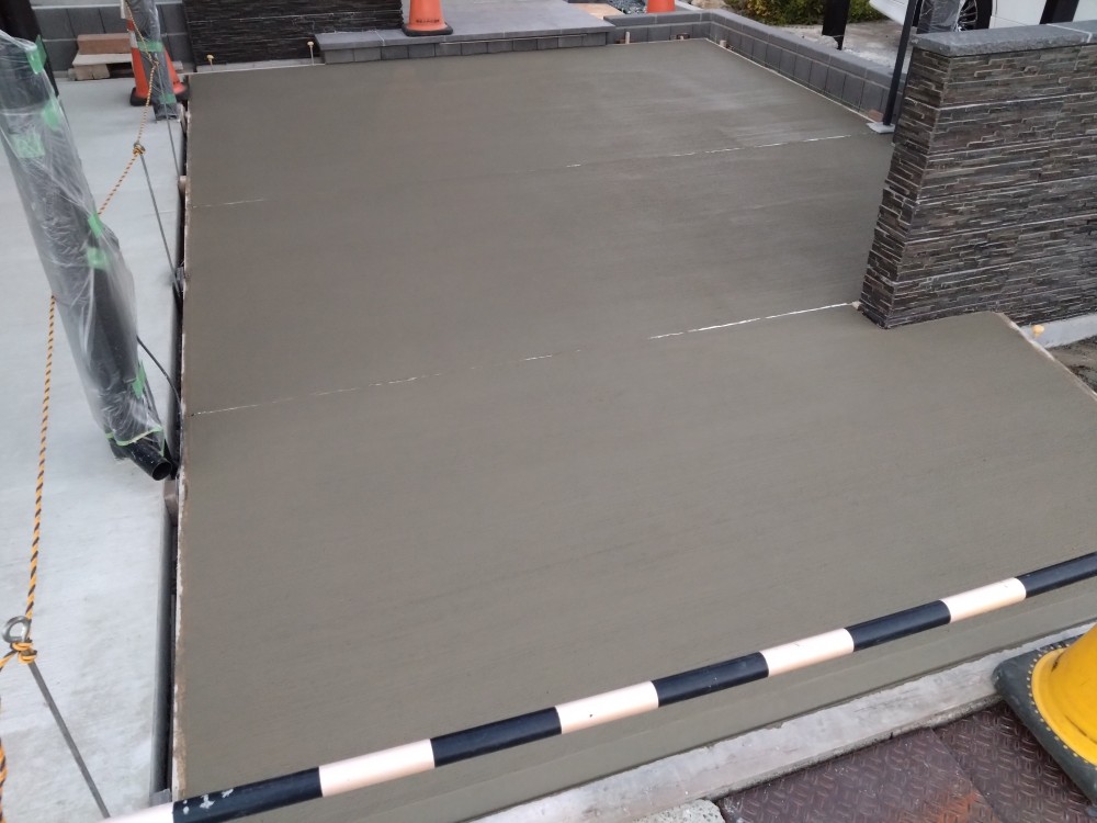 土間打設、花壇、角柱 10月28日(火) こちらの現場では、土間の打設を行いました。目地はスーパー目地を使用しています。打設後に表面のシールをはがすので綺麗な仕上がりになります。色はブラックとグレーの二種類あります。 こちらの現場では、レンガのマフィンブリックという商品で花壇と角柱を作っていきました。レンガのオレンジは洋風な外壁とよく合っていて植物の緑とも相性がいいので植栽するのが楽しみですね!