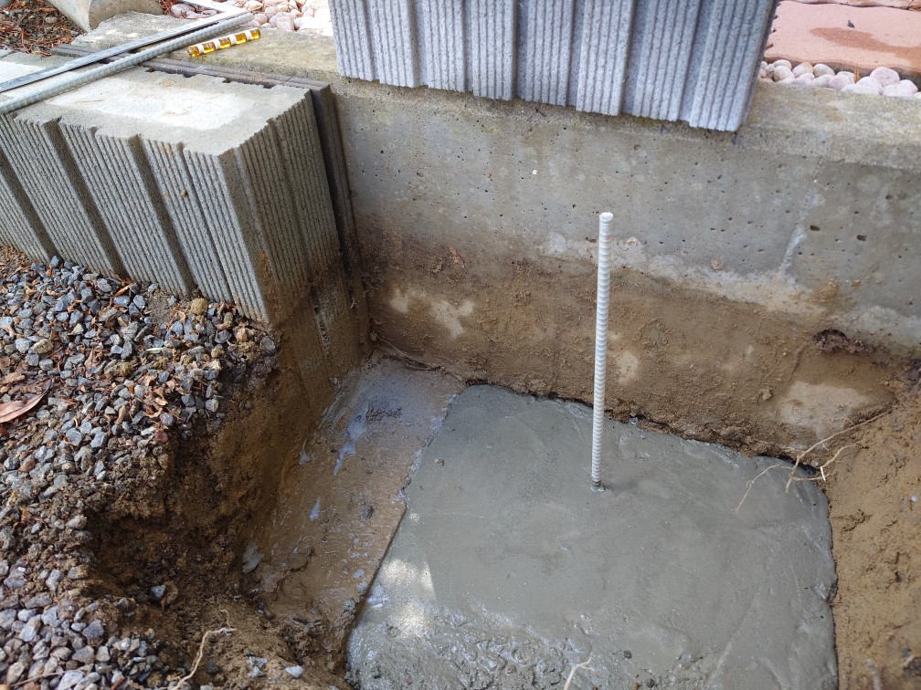 目隠しフェンス増設 8月7日(木) ルシアスフェンス増設のため、化粧ブロックにコア穴抜きを行い、柱を建て込み。朝方の強雨で本日の作業が不安にも感じましたが、天気予報どうりに次第に晴れとなりセメント仕事ができ、明日のフェンス板貼りの準備が整いました。 長野市 松本市 塩尻市 外構エクステリア
