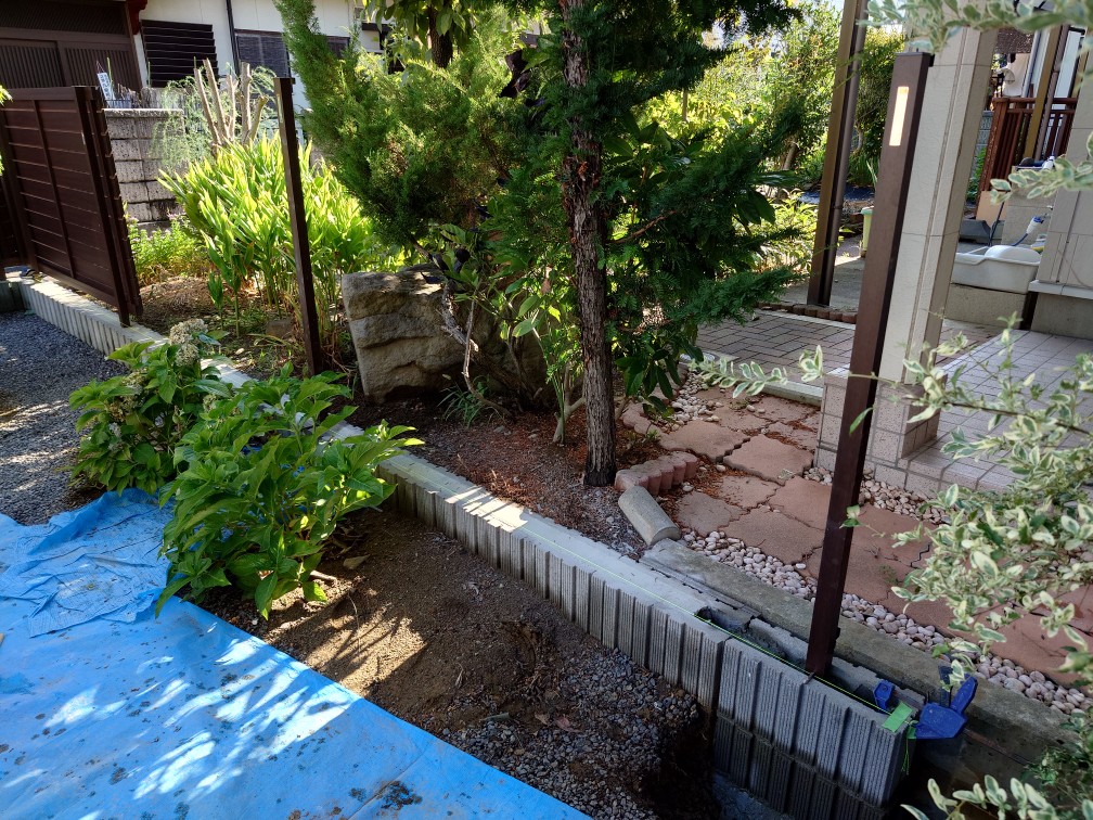 化粧ブロック積み 10月1日(水) 現場の写真はありませんが、化粧ブロック積みを行いました。今回積む部分は土留めも兼ねているため、中の構造は型枠ブロック、見た目は化粧ブロックの作りになっているスマートCの型枠タイプを使用しています。元々今日は雨予報だったので、すでにブロックを積んだ個所の埋め戻しを予定していましたが、昼頃と帰りがけに少し降る程度で済んだため、セメント仕事を進める事が出来ました。この現場ではまだまだセメント作業があるので、今後も天気予報を参考にしつつ臨機応変に作業を進めていきます。