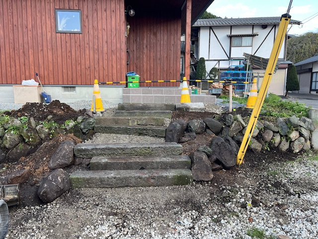 昨日に引き続き浅間石を組んでいきました。石が崩れないよう裏で土を締固めながら作業しました。石を見ながら悩み始めると手が止まってしまうこの作業。逆にスイッチが入ると手が止まりません。自然石を使うとかなり雰囲気が変わります。