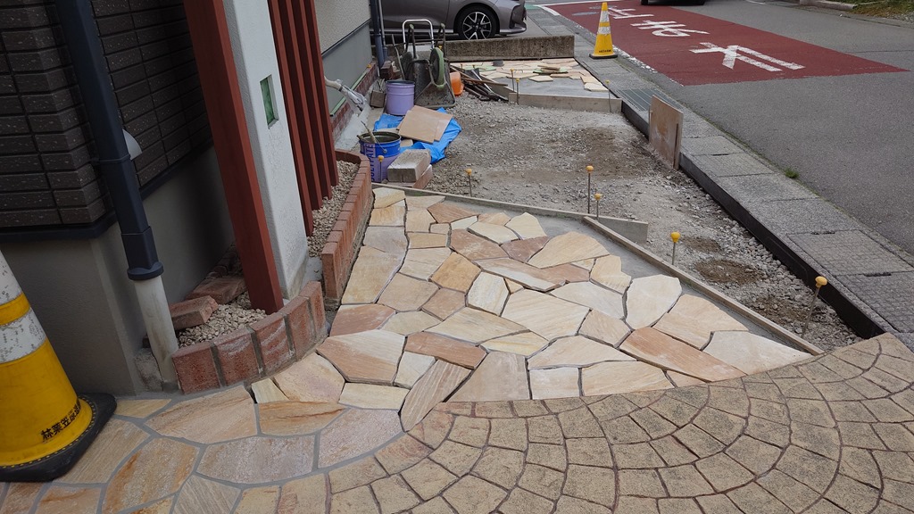 加工も多く、時間がかかりますが今日も今日とてパイルストーンを貼っていきました。あともう少しが長い!