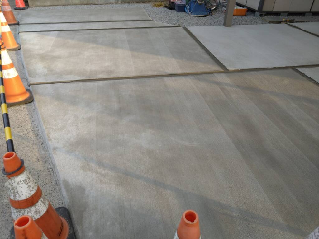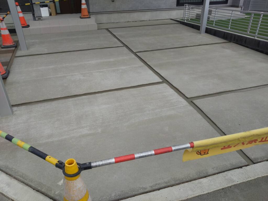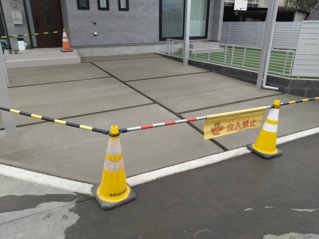 先日据え付けたプラーガブリックにジョイサンドハード(固まる珪砂)を入れて道路際を仕上げて車の乗り入れが出来るようになりました。土間スリットのファイバーレジンとアプローチのリンクストーンも硬化が確認が出来たのでバリケードを開放しました。リンクストーン内に埋め込んだ犬をかたどったワンポイントも綺麗に仕上がり、お客様にも喜んでいただきました。残工事に植栽が残っているのでもう少しで完了になります。冬場から着工させていただき春先までコンクリート打設をお待ちいただいてようやく竣工になります。お客様にも車両の移動等ご協力いただきありがとうございました。