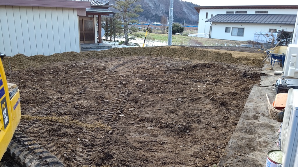 こちらのお宅では、余分な表土を剥ぎ取り、山砂を敷き均しました。