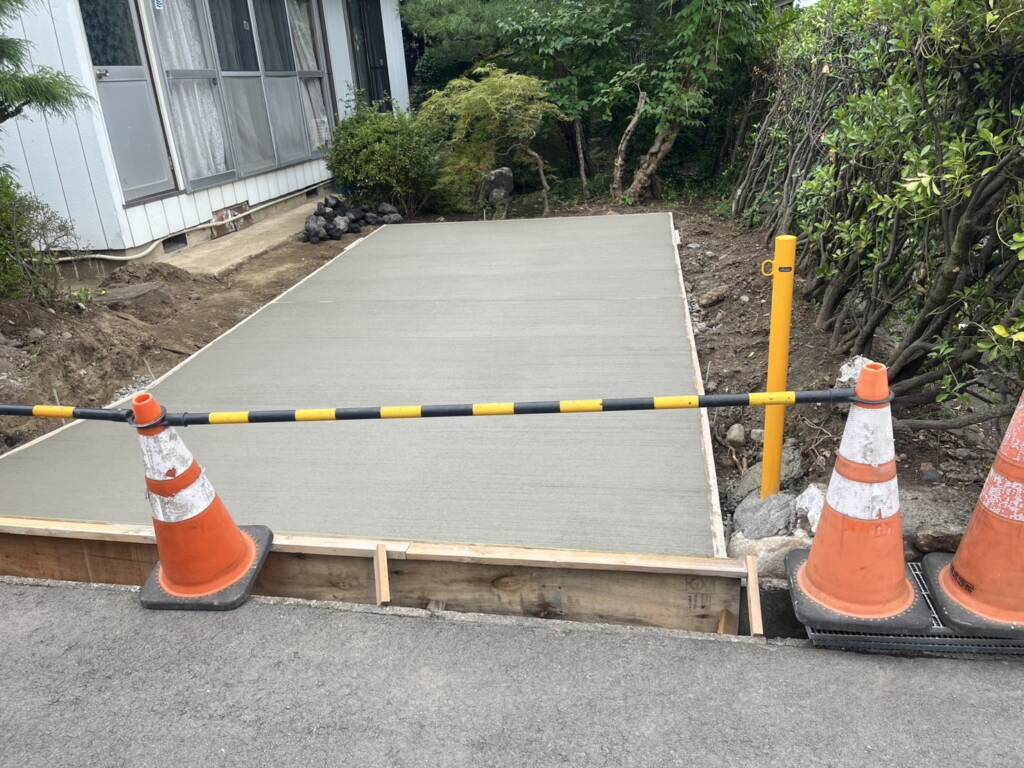 土間打ち。 9月19日(金) 曇り空でしたが気温もだいぶ下がり打設のしやすい天候でした。既存庭を解体して車1台分の車庫を作ります。スーパー目地でクラック対策をしてスリップ防止に刷毛引き仕上げで施工しました。道路との境はU字構のためグレーチング蓋をかける予定です。 長野市 松本市 塩尻市 外構 エクステリア