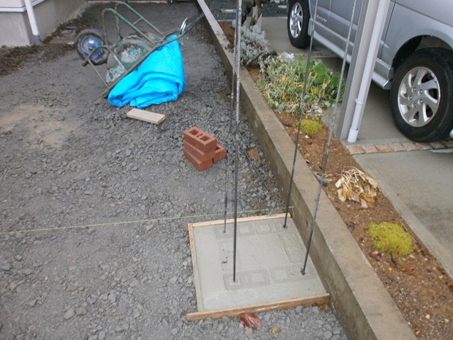 ベースコンクリートを打って、レンガを立てました