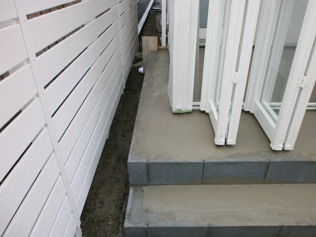• タイルテラス下地、門柱下塗り