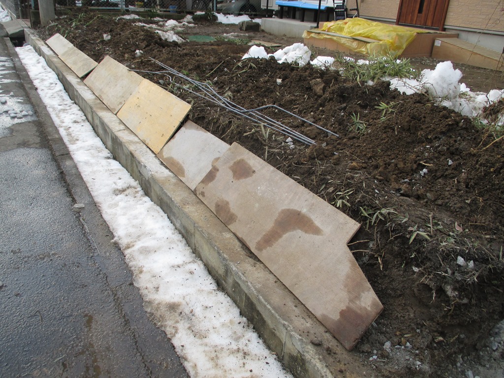 防草シートとテコラを敷きこみアルファウッドの柱用穴