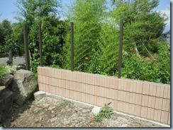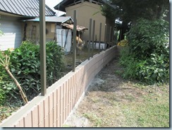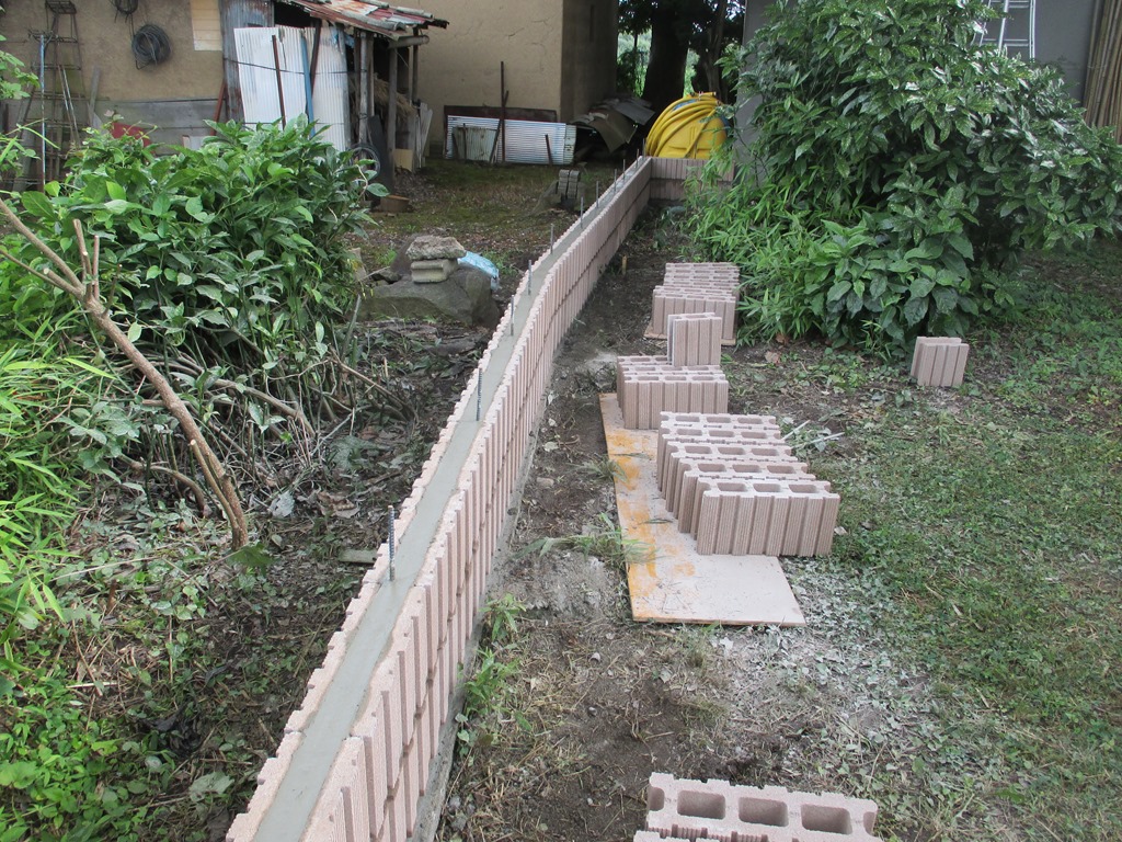 既存基礎上にアンカーをさし、化粧ブロックのミスティブラウン色を積み、40角の柱をたてました