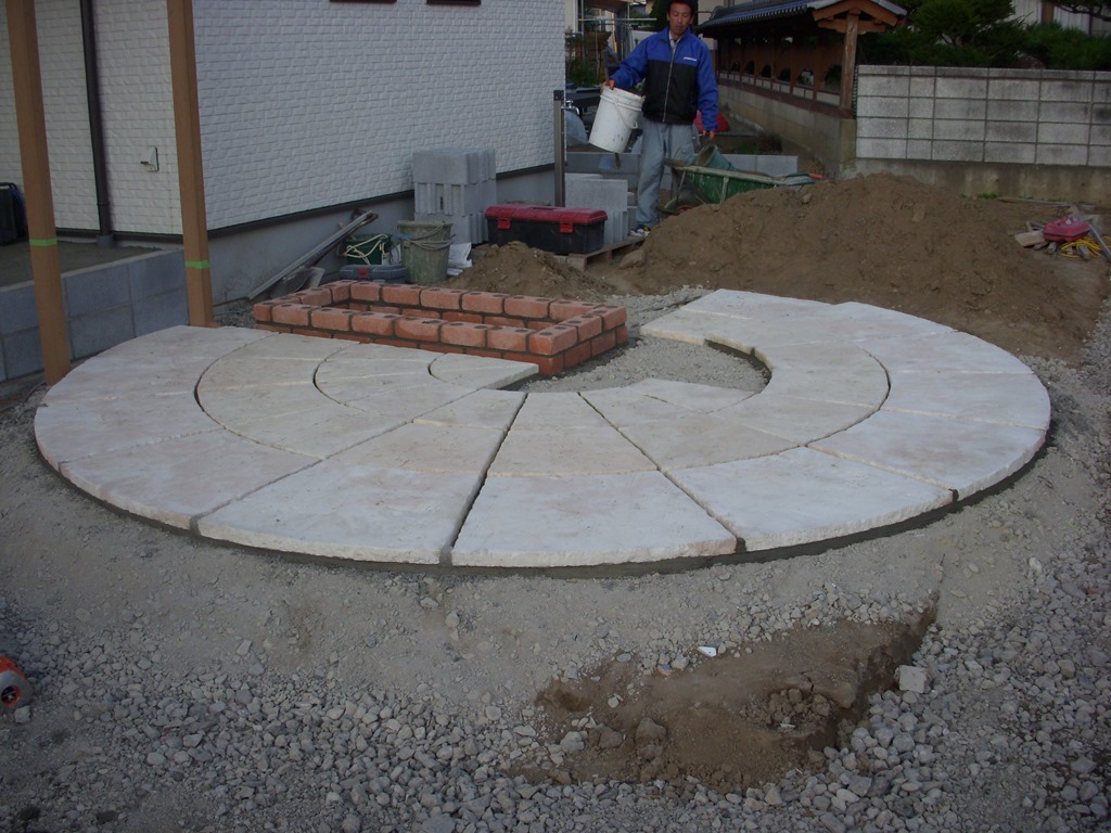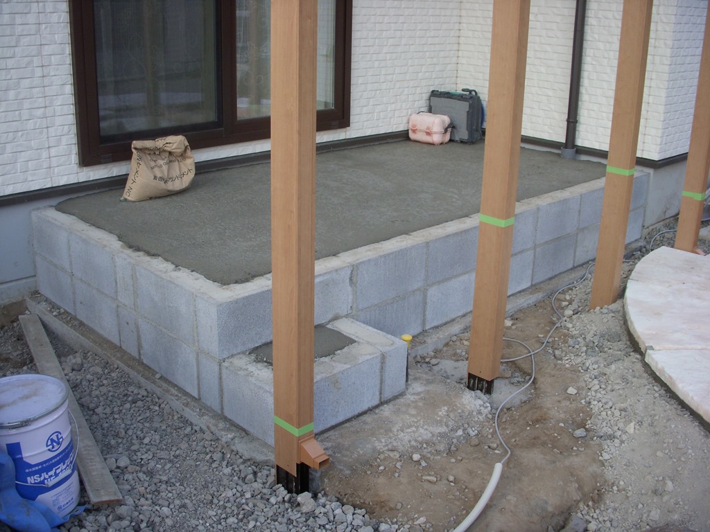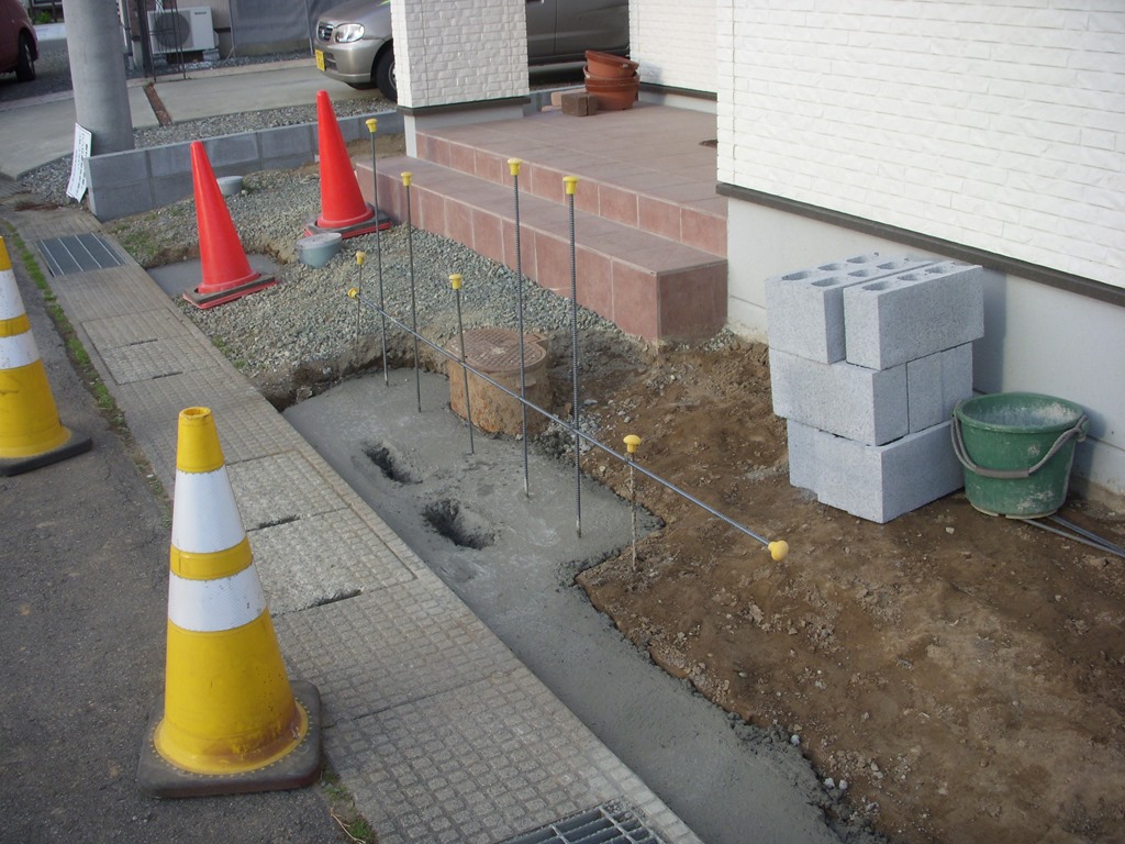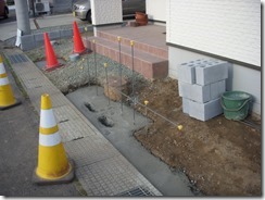 門柱のベースとタイルテラスの下地、ガレージ下のコンクリートを打ち、