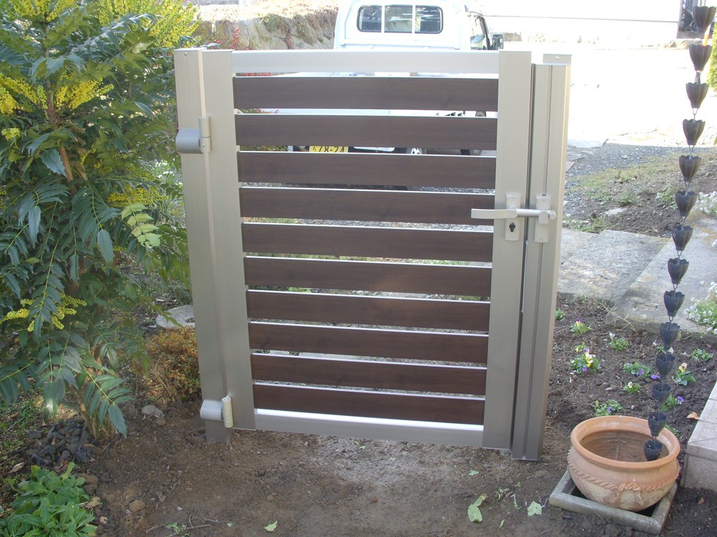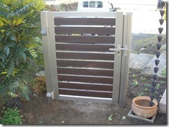 門扉の取り付けをして、フェンスの柱立てと枕木、防草シートとテコラを敷きました