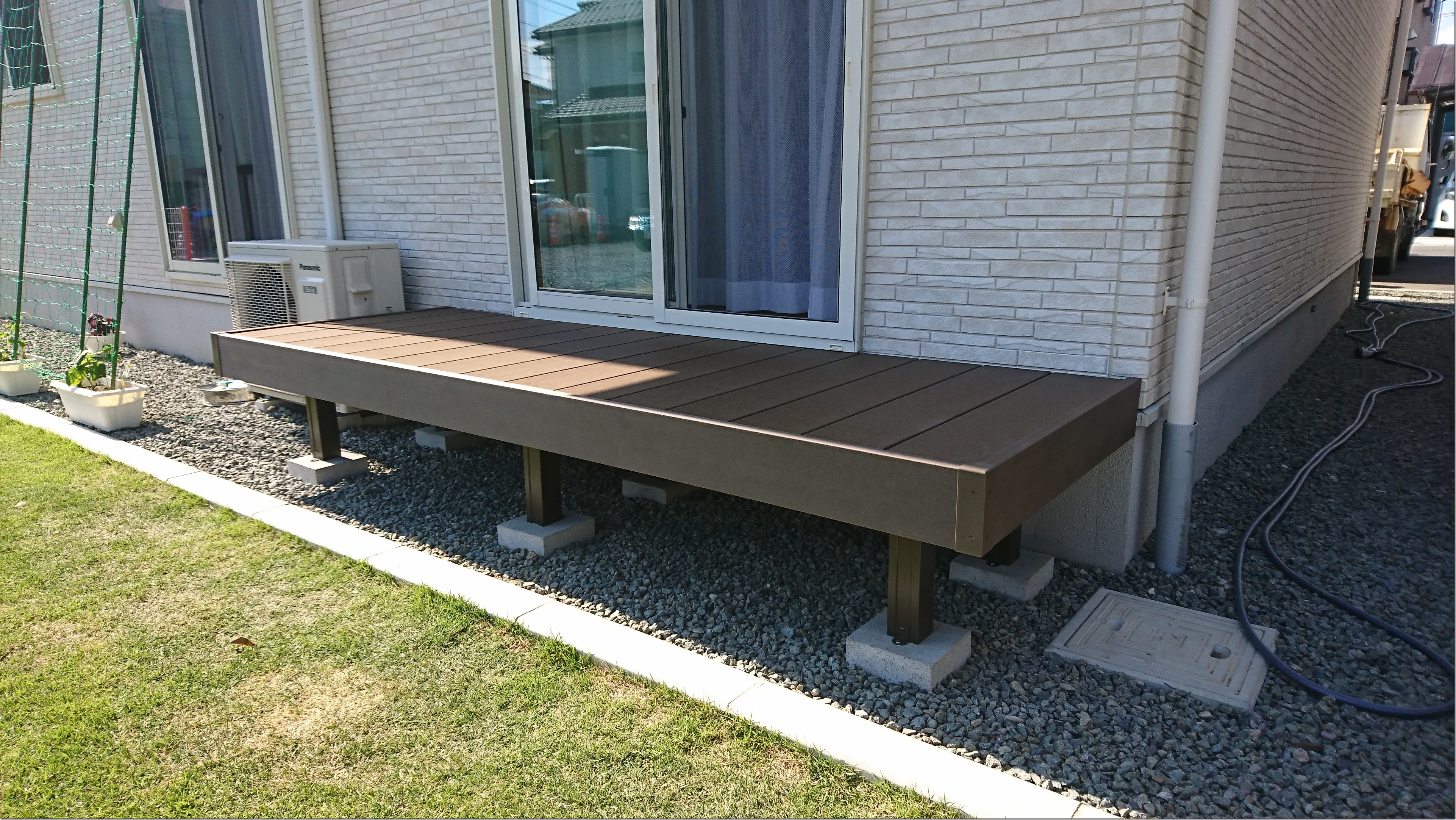 樹ら楽ステージ。 5月29日(金) 今日はウッドデッキの取り付け作業を行いました。商品はLIXILの樹ら楽ステージです。間口が1,5間、出幅3尺のサイズです。庭側のサッシ前にデッキがあるだけで屋内と屋外の行き来が非常に楽になります。少し腰を掛けて外を眺めるなんて時間が普段の生活にあっても良いかもしれませんね!完成後に見てくれたお客様もたいへん喜んでくれました。ウッドデッキがあることによって生活スタイルが変わるかも・・・ 昨日に引き続きまたまた写真少ないですが次回こそ・・! 長野市 外構 エクステリア