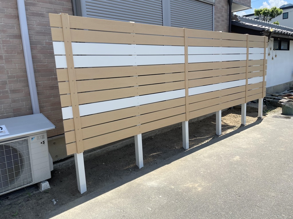 こちらのお宅では、目隠しフェンスを取り付けました。おしゃれなツートンカラーの仕上がりです。