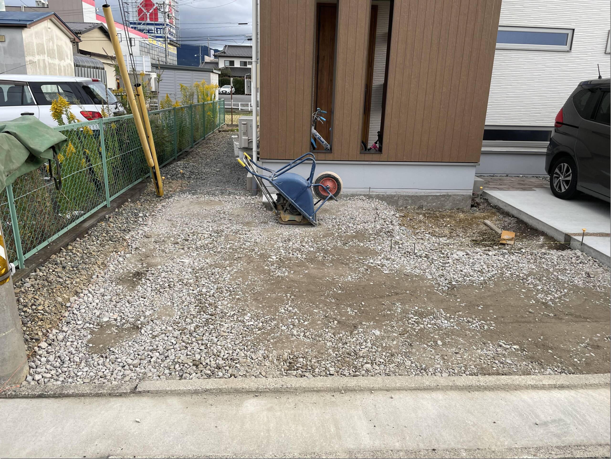 明日から天気が悪そうです・・・ 10月11日(月) この写真は今日のではないんですが、駐車場のスリット部分のファイバーレジンをしました。「さなげ」という名前のファイバーレジンになります。 それで今日の作業は、残りの駐車場スペースのスキ土工事になります。一部砕石が入っていない部分は植栽予定地になります。 この現場では人工芝を貼りました。天然芝もいいんですが人工芝のいつでも青々としてるのもきれいですよね。 明日から雨予報になっていて、影響は読めませんが台風もあってと天気の悪い週になりそうですね。今週も土間の予定があるので雨が降らないことを期待してます。 長野市 外構 エクステリア