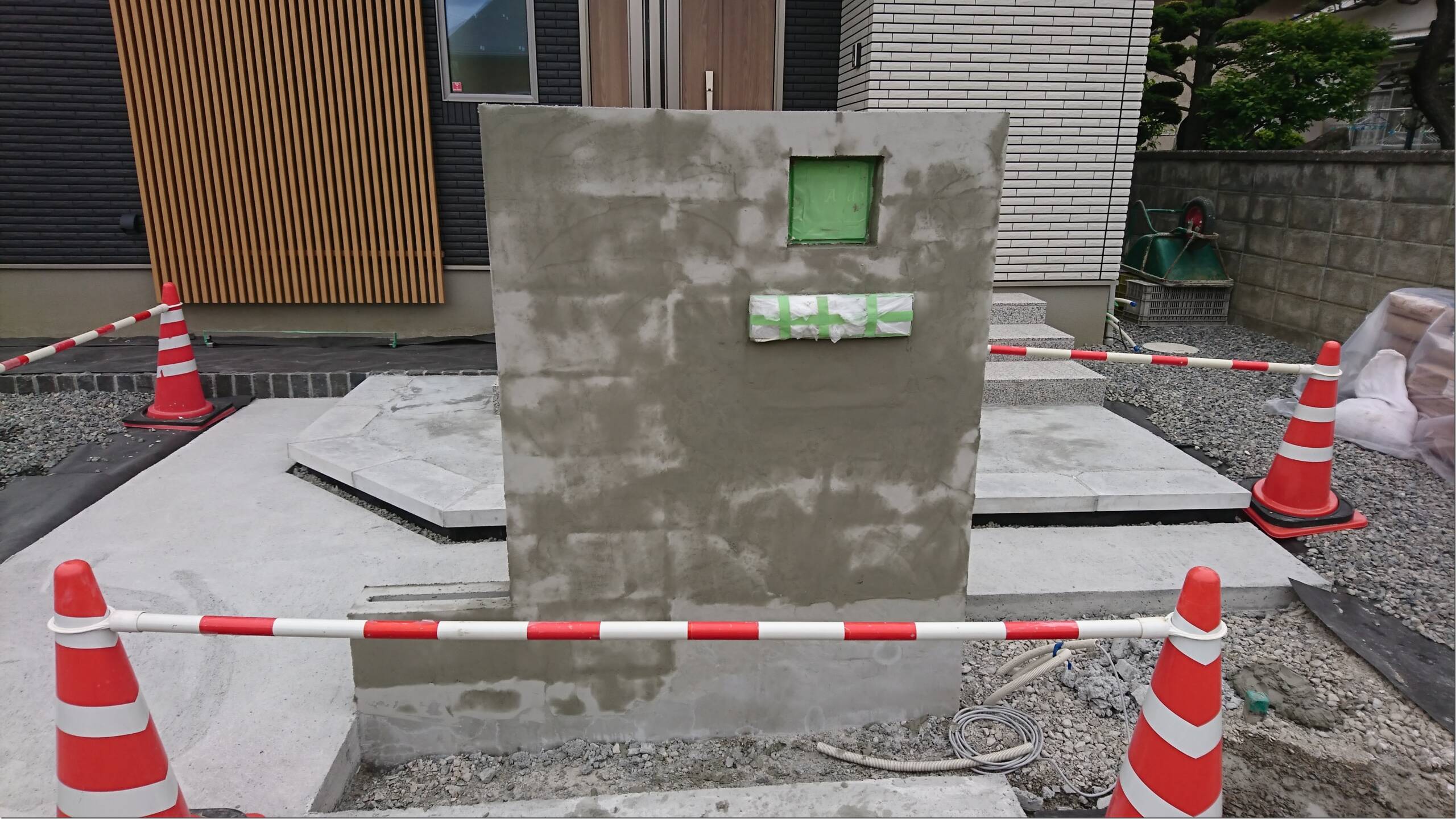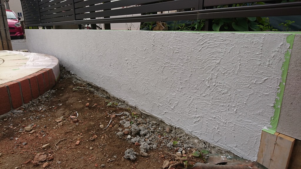 この現場では門柱の下地塗りをしました。この後ジュエルガラスを入れや、ジョリパットでの下塗りをして本塗りになります。