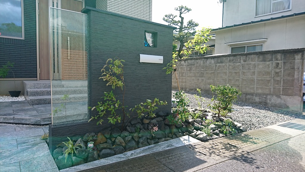 朝から雨降りでカッパでの作業を覚悟していましたが、午前中のうちに止んでくれて作業のほうは捗りました。松本方面で施工していた現場が完了しました。お客様も喜ばれていたと聞き、職人冥利に尽きます。お客様から預かっていた記念樹のジューンベリーがアクセントになり賑やかな植栽帯を作ることが出来ました。