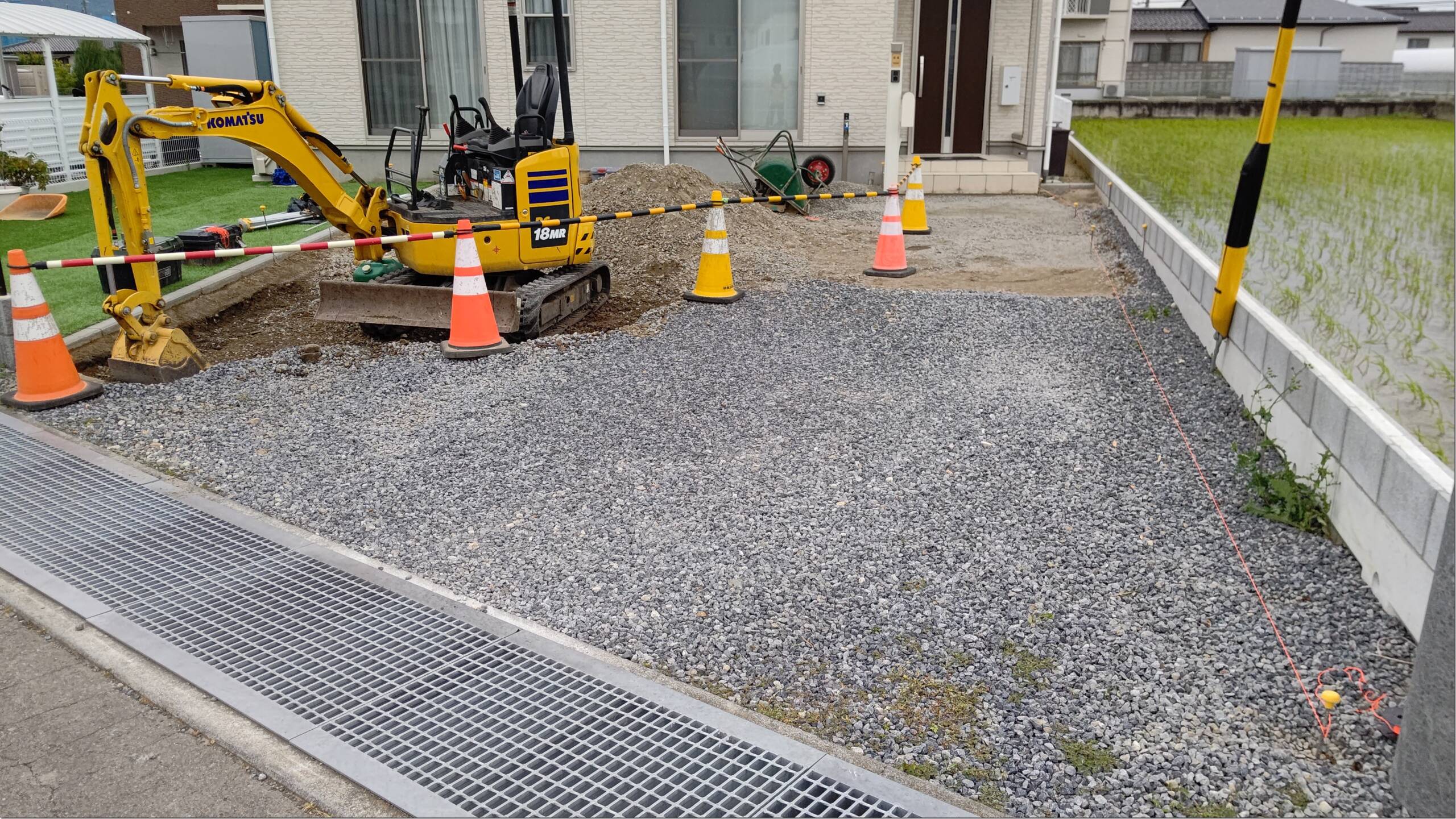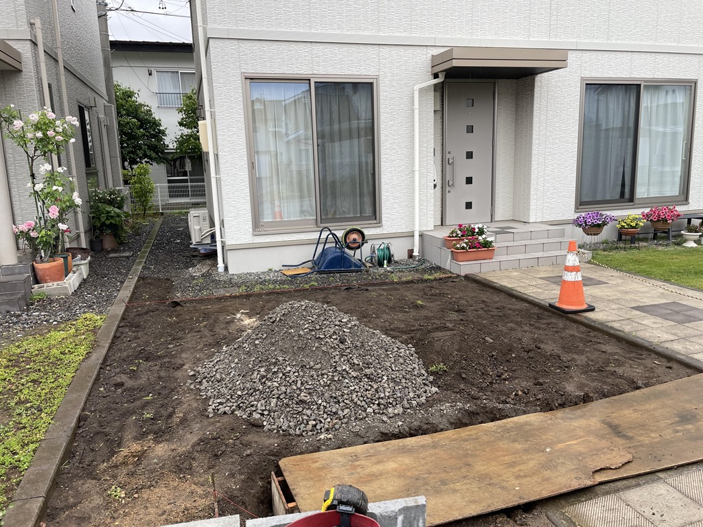こちらの現場もスキ土作業を行いました。今日から新規の現場が2件ありました、着工日の庭を覚えておくと完成した時に全く別の庭になるのでとても達成感があります!