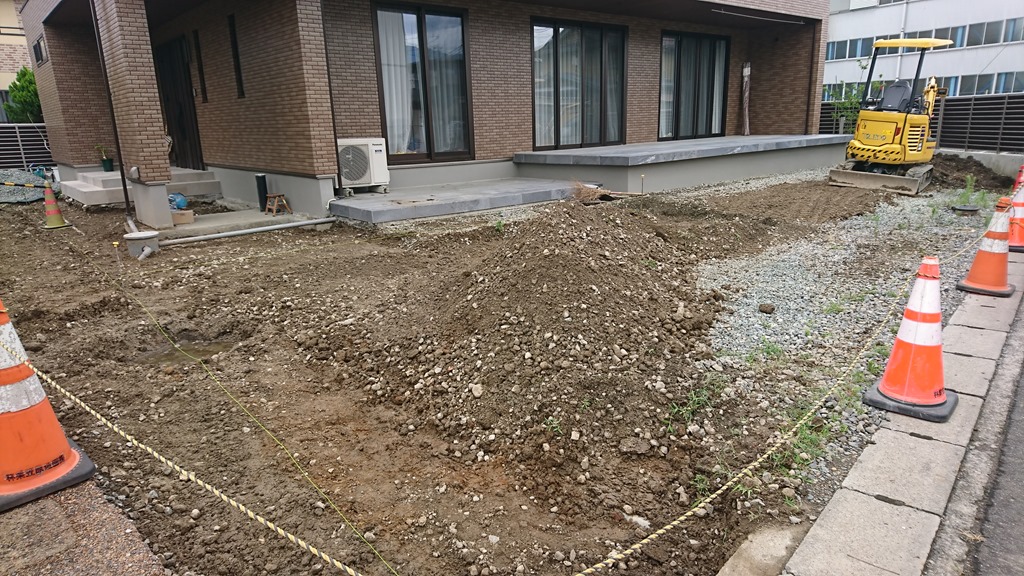 スキ土、カーポート、板石 7月19日(火) こちらのお宅では、スキ土作業を行いました。スキ土した箇所はベースを打った後タイル張りをしていきます。 こちらのお宅では、カーポートの建て込み作業を行いました。既存のカーポートを解体してから移動して建て込みを行っていきました。このタイプのカーポートは部材がとても重く、工夫しながら作業を行っていきました。 こちらのお宅では、スキ土と板石作業を行いました。天気予報では一日雨の予報でしたが午後には晴れたので作業が捗りました! 長野市 外構 エクステリア