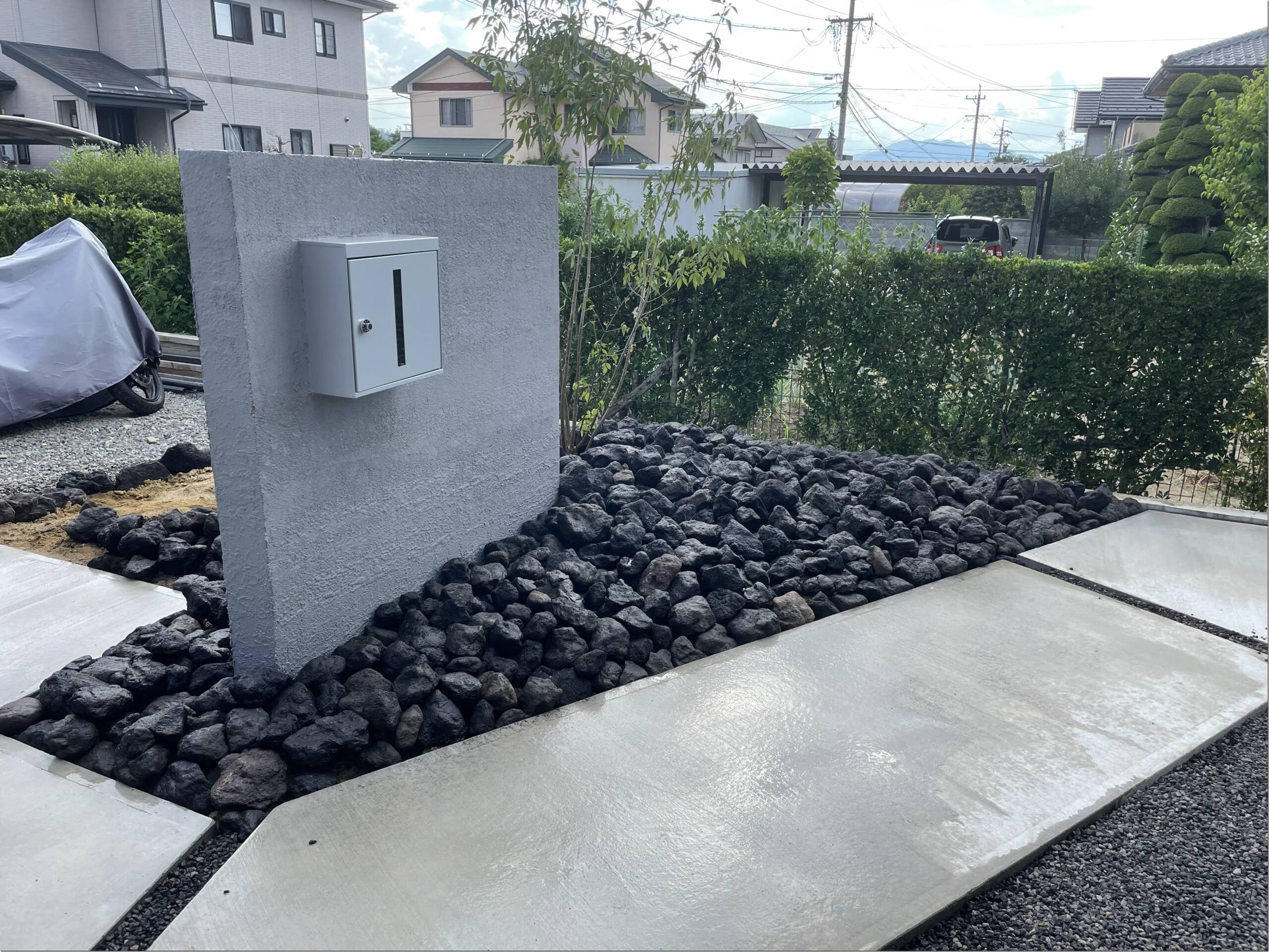 今日は前回、客土を入れた植栽スペースにガロックを敷きこんでいきました。まだ門柱の正面が埋まってないので引き続きやっていきます。あとは低木などを植えていく予定です。