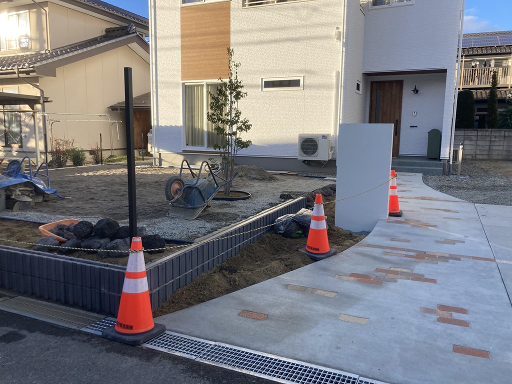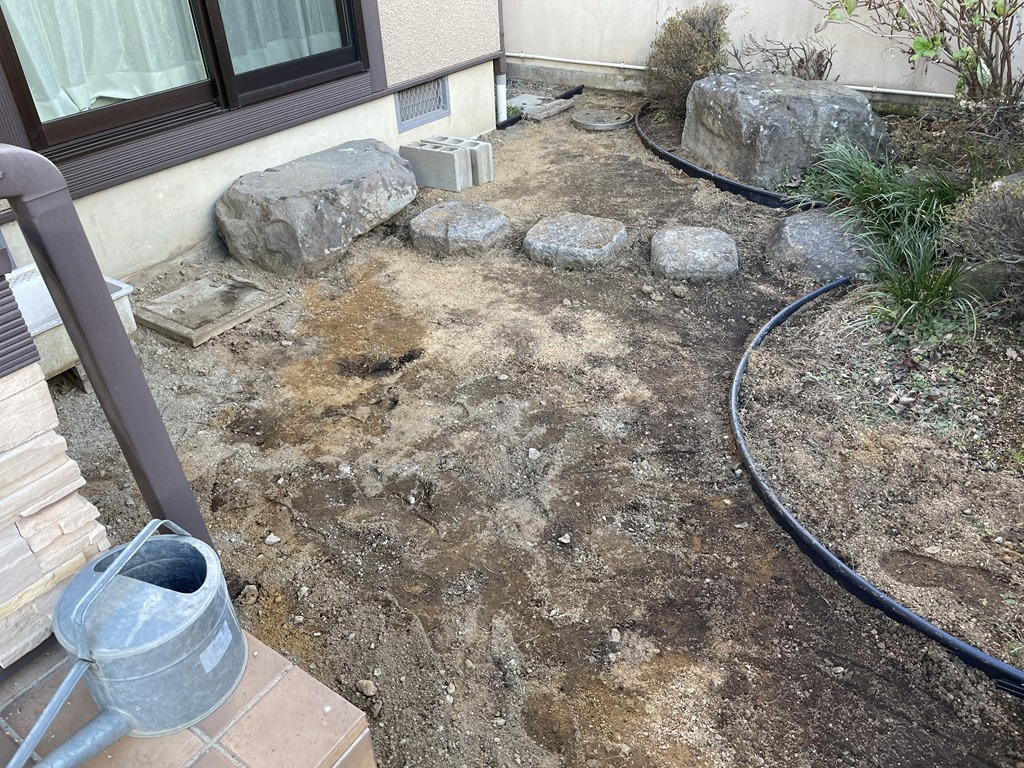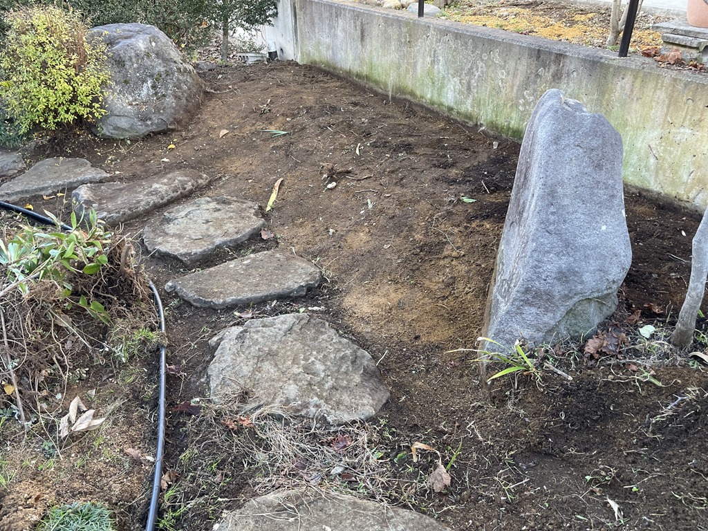 スキ土と諸々 12月6日(火) 昨日、縁思いを据えた現場で今日はスキ土をしていきました。砂利を敷いていく計画で上と下の写真で敷いていく砂利の種類が違います。もう少しスキ土をしていくので、砂利はもう少し先になります。 この現場では、道路側にフェンスを張っていくので柱を立て始めているところです。あとは門柱奥の浅間石を据えたのとソヨゴを1本植えました。 長野市 外構 エクステリア
