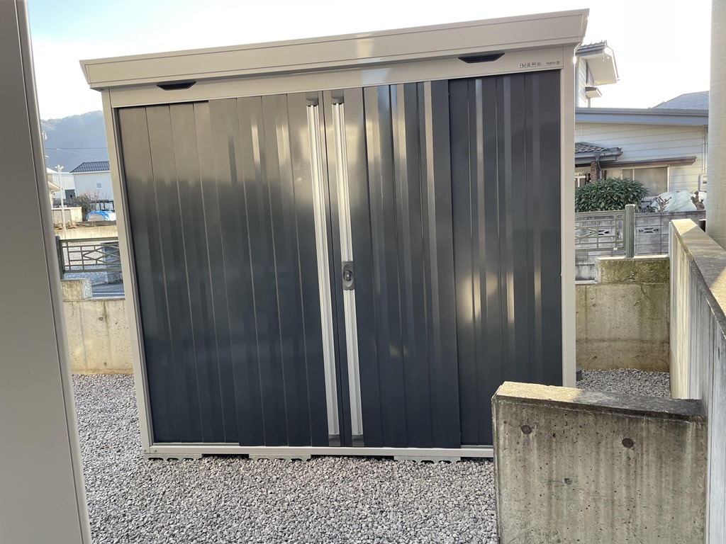 物置建てました 1月23日(月) 今日は物置の組み立てをしました。イナバ物置さんの「フォルタ」という商品になります。両扉のちょっと大きいサイズになります。写真だと分かりづらいですが高さのある物置なので、棚も3段で横幅いっぱいあったので沢山収納できそうでした。 長野市 外構 エクステリア