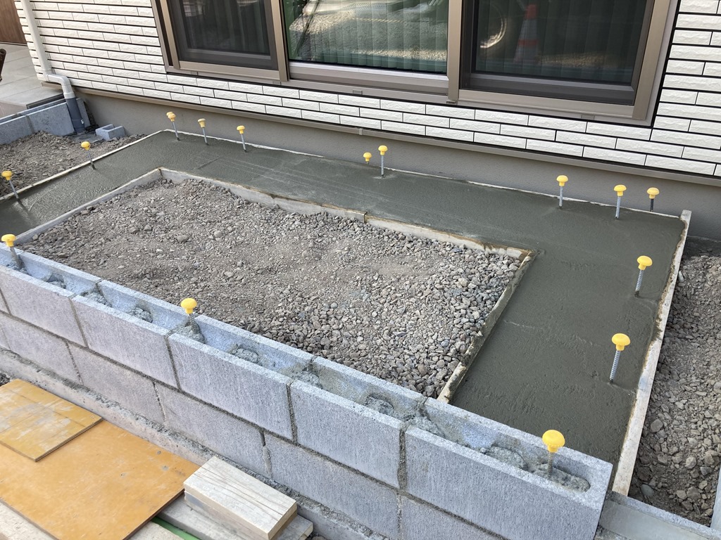 ベース打設・景石据え付け・土間下地 5月10日(水) こちらのお宅では、タイルテラスのベースコンクリートを打設しました。 このテラスはもう一段ブロックを積んでからタイルを貼っていきます。 こちらのお宅では、景石の据え付け作業をしました。 この景石の中は客土を入れて植栽帯になります。 こちらのお宅では、土間下地の作業をしました。 こちらの土間は明日打設をしていきます。 長野市 外構 エクステリア