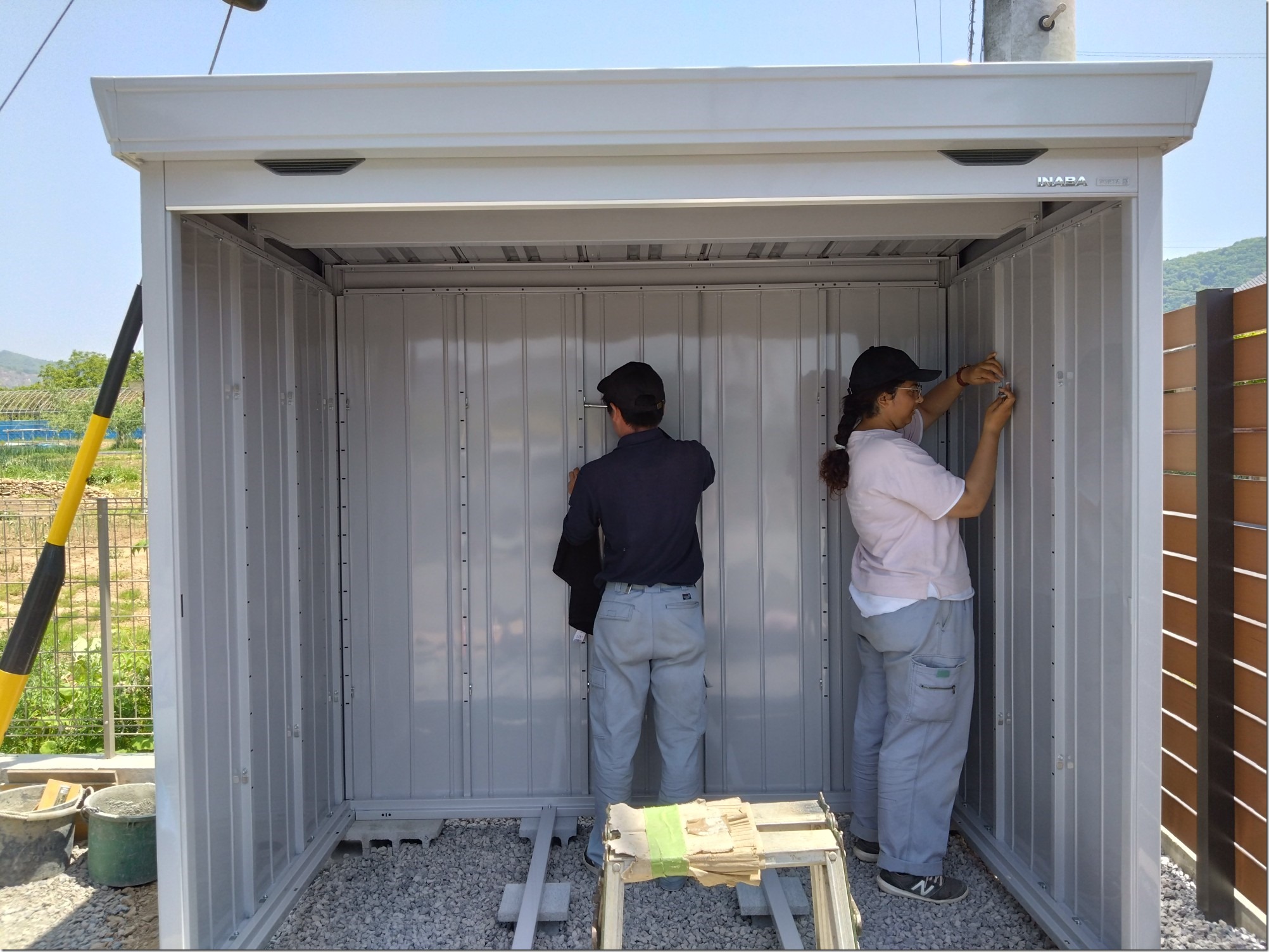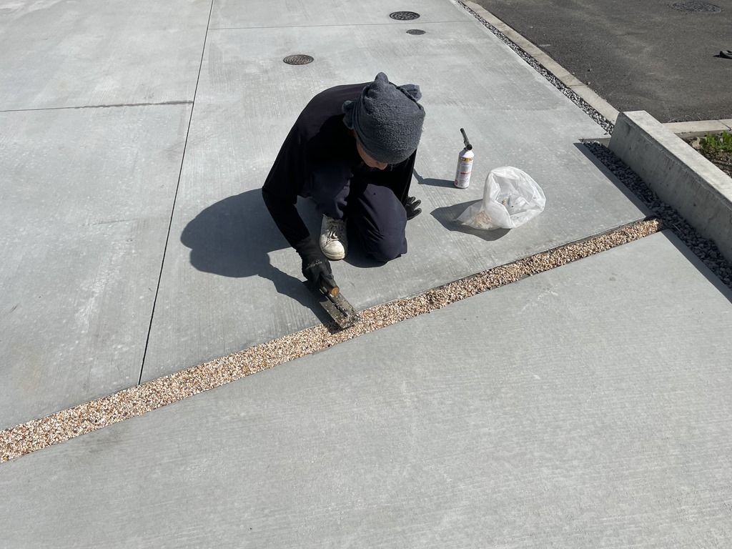 物置・土間打設・ファイバーレジン 5月17日(水) こちらのお宅では、土間の打設と物置の建て込みの作業をしました。 新人の人にも物置の建て込みを手伝ってもらいながら立て込んでいきました。 こちらのお宅では、ファイバーレジンの敷き均し作業をしました。 スタンプコンクリートの色とあっていてとてもいいですね! 長野市 外構 エクステリア