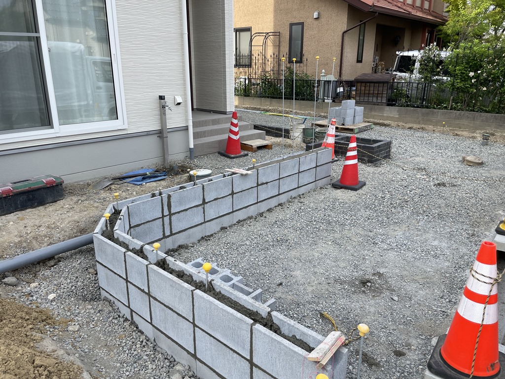 こちらのお宅では、ブロック積みとレンガ積みの作業をしました。