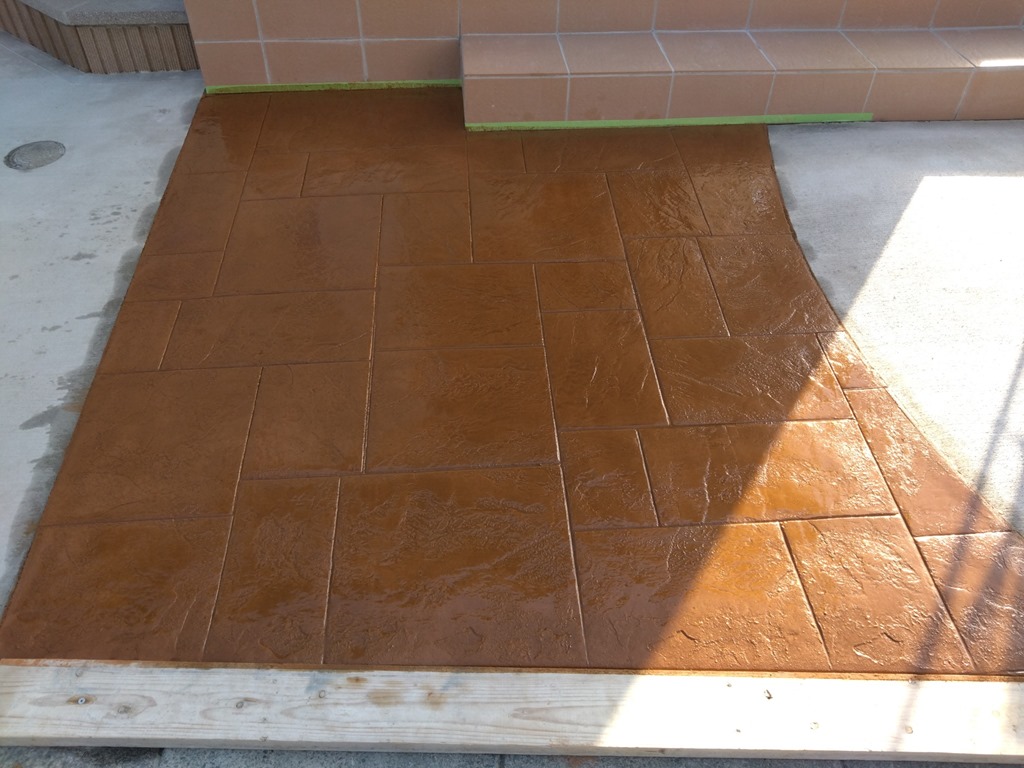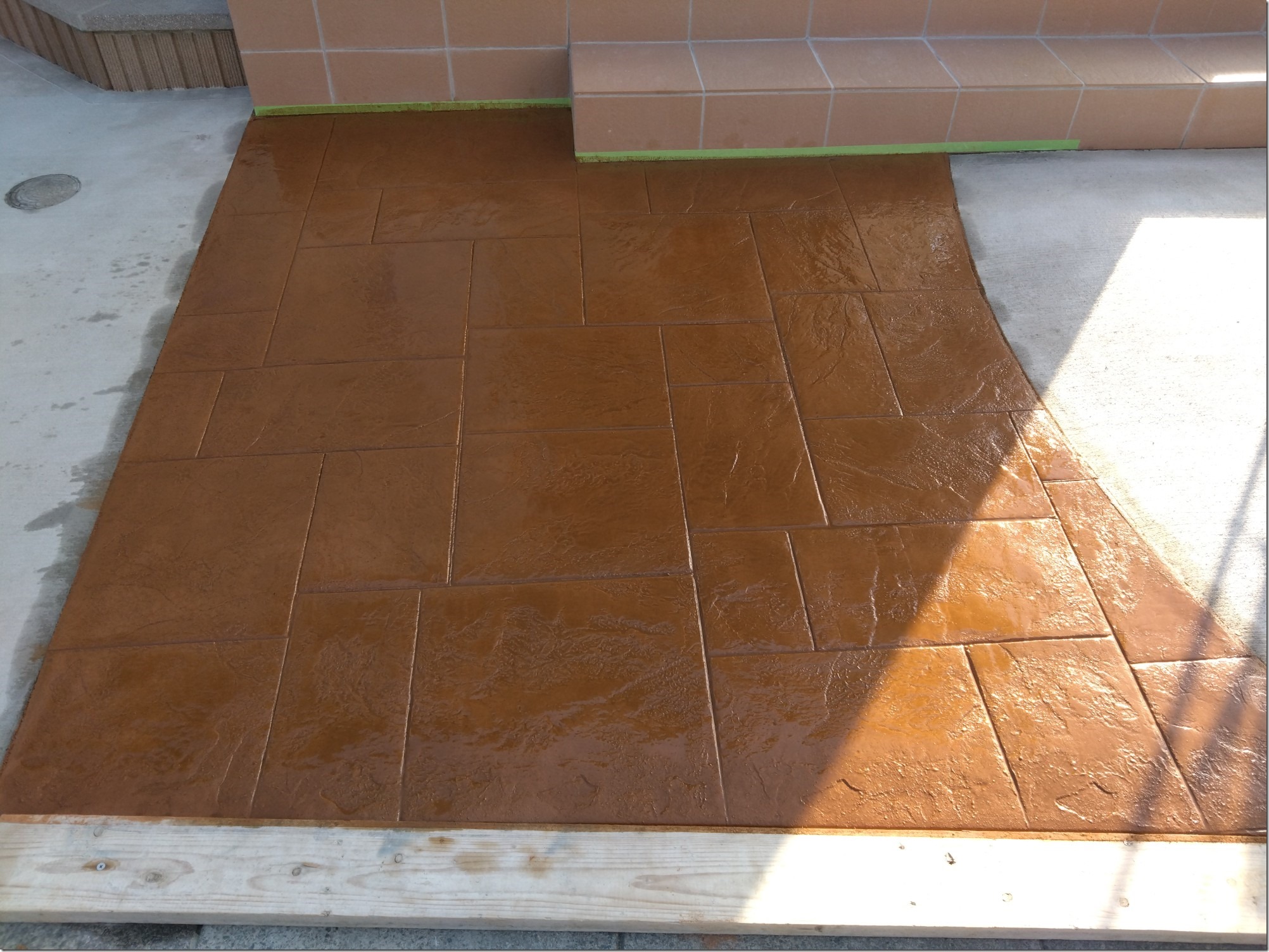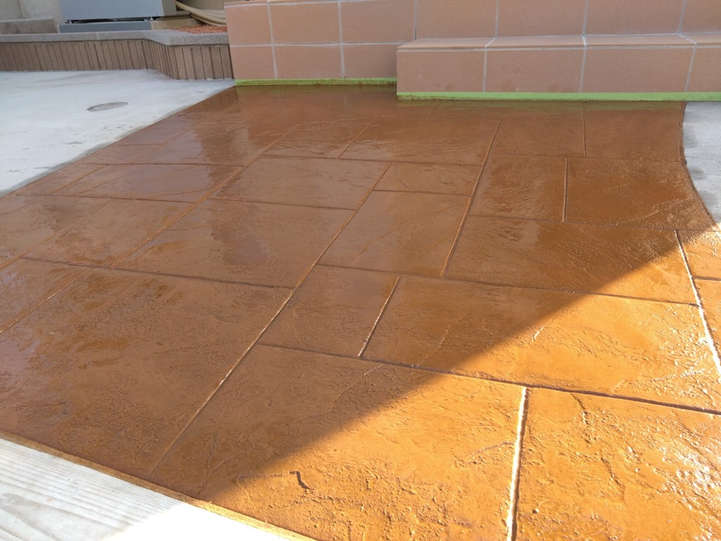 スタンプコンクリート 11月12日(火) こちらの現場では、スタンプコンクリートの打設をしていきました。生コンを打った後型の付いたマットを上から押し付け生コンに型を映していきます。そのあとに色付けをしていきます、色々な型があるので見ていて楽しめます! 長野市 松本市 塩尻市 外構 エクステリア