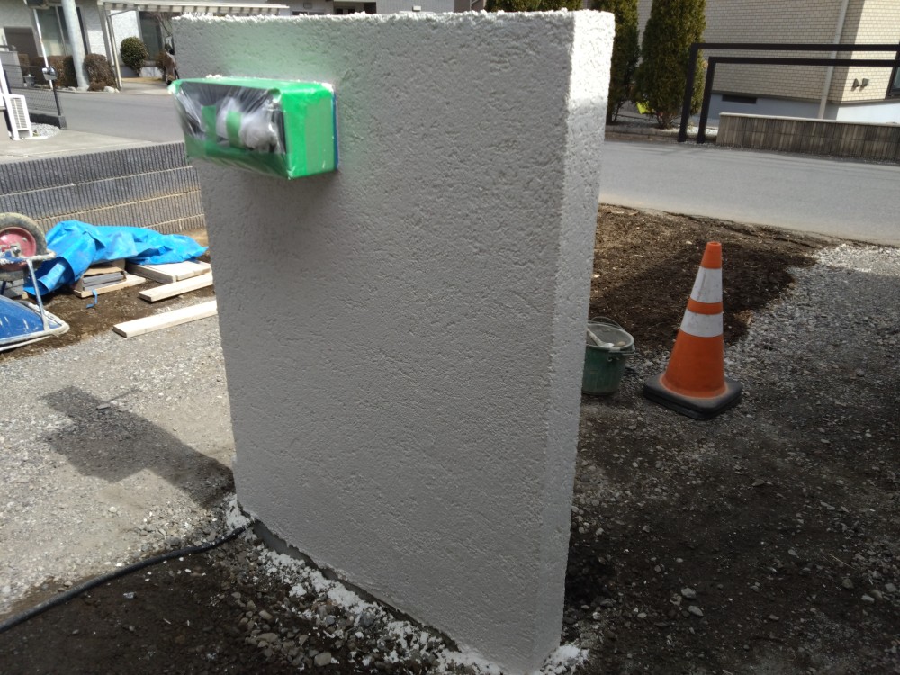 門柱仕上げ塗り、ラッジプレート貼り付け