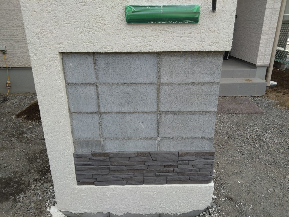 こちらの現場では、門柱のジョリパッド仕上げとラッジプレートの貼り付け作業を行いました。