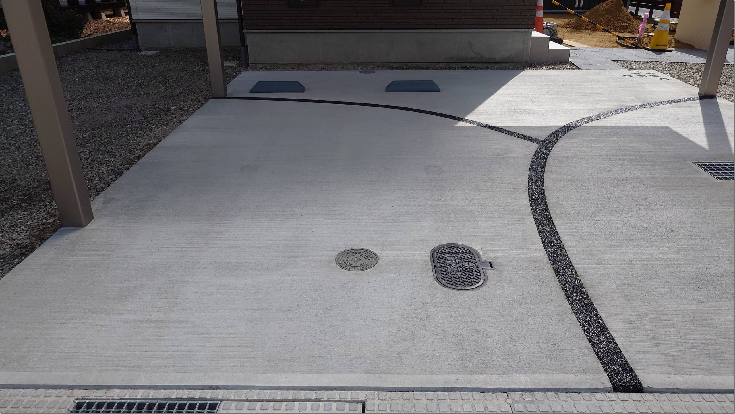 放射冷却により朝は凄く冷え込みましたが日中は暖かく作業しやすい日でした。現場作業も予定以上に捗りました。昨日打設したタイルテラスのベースコンクリートの脱型をし、余分なバリを取り除き清掃しました。同現場で敷地の周りにはリクシルのABフェンスys3型を取り付けるため柱を建て込みました。テラス腰壁の正面には花壇を作るのでブロックのベースコンクリートを打設していきます。