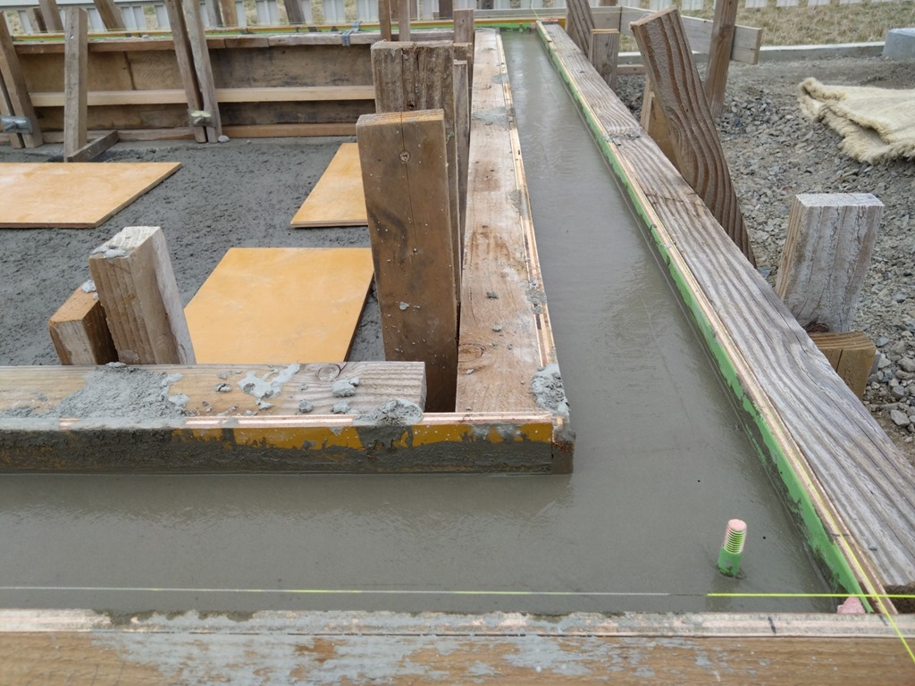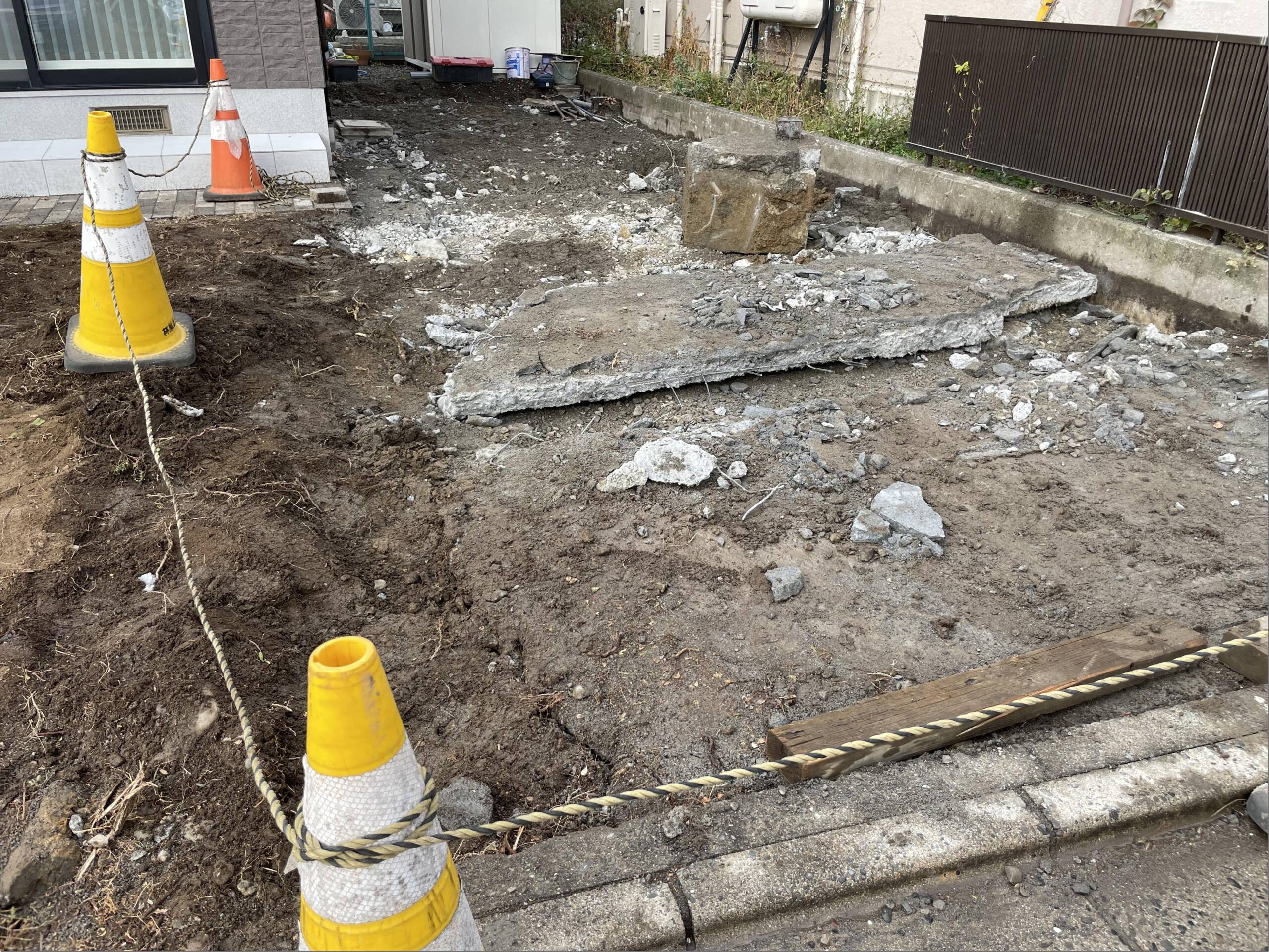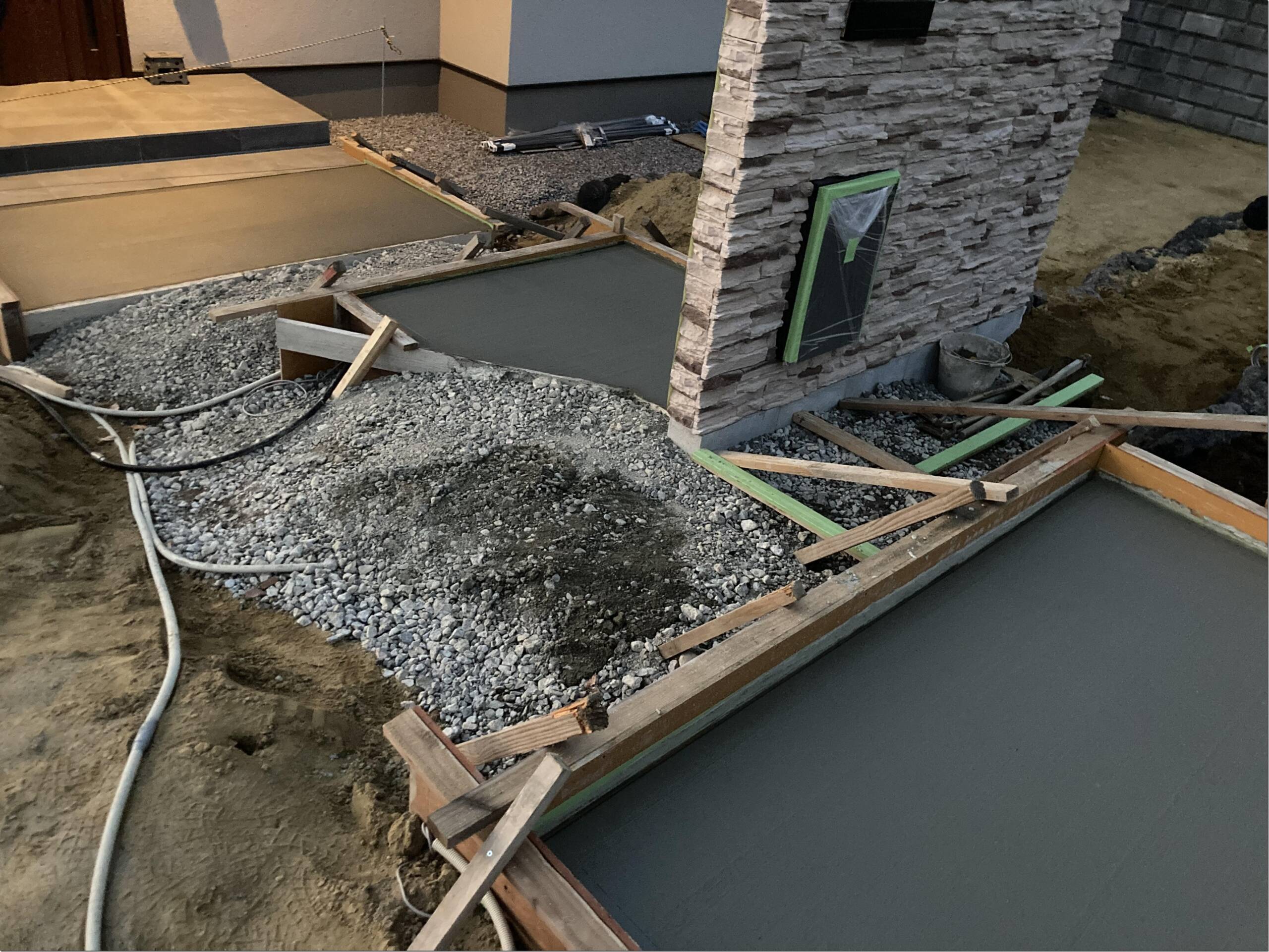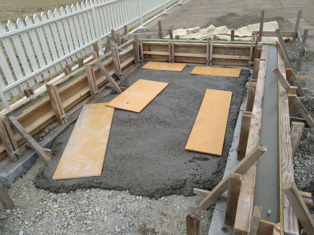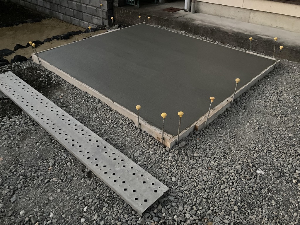1件目の現場では昨日打設したコンクリート階段の脱型をし残り土間の下地を作りました。日中の気温も高く型枠を外すと硬化も早いです。見た目は乾いていても強度が出るのはまだ時間がかかるためしっかり養生していきます。