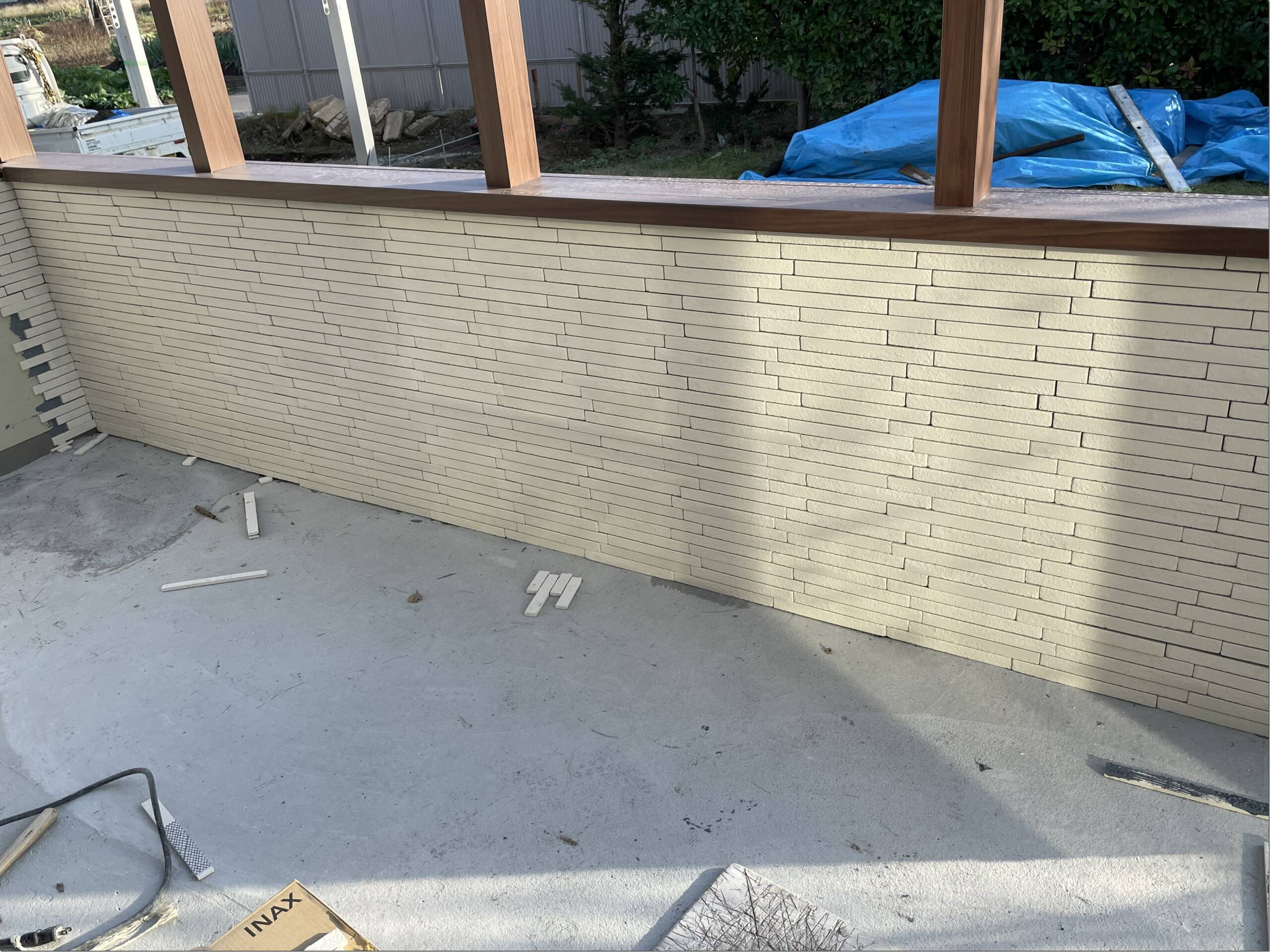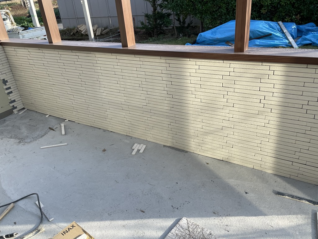 別の現場では門柱周りのカルムぺイブを貼っていきました。下地処理としてベースコンクリートを打設しているので沈下する心配がありません。養生シートで包まっている門柱も晴れた日に目掛け最終仕上げに入っていきます。来週はまた猛暑日があるとのことなので、束の間の涼しさでしたが暑さに負けず頑張ってまいりたいと思います。